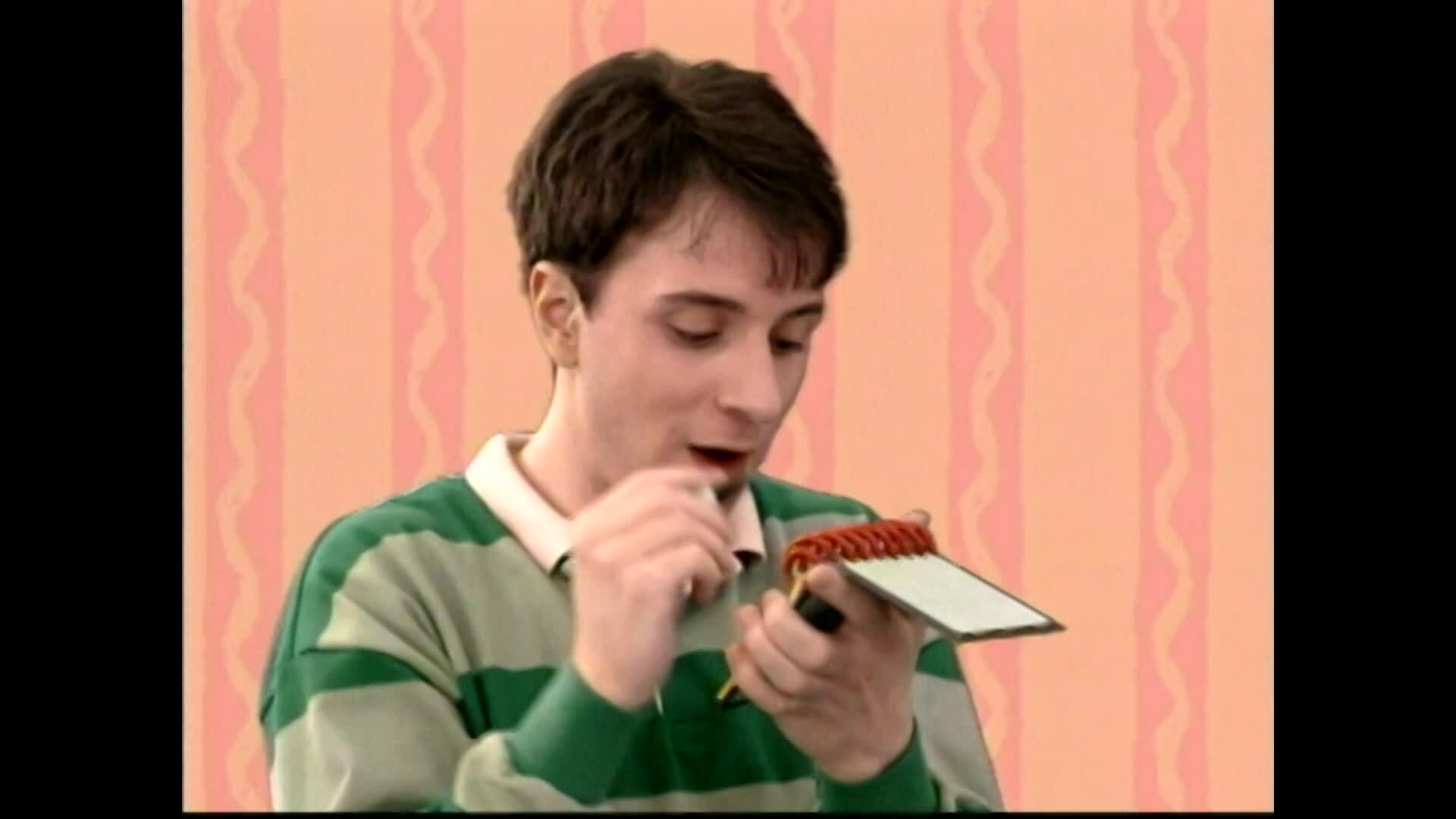 Blue e Steve estão montando uma peça de teatro e vamos descobrir qual peça a Blue quer encenar juntando as Pistas de Blue em nosso bloquinho sabe-tudo!