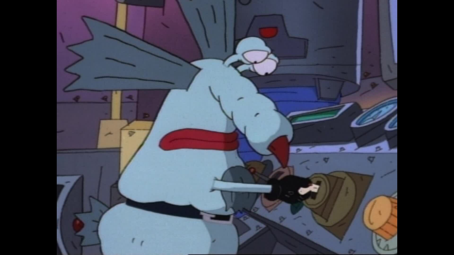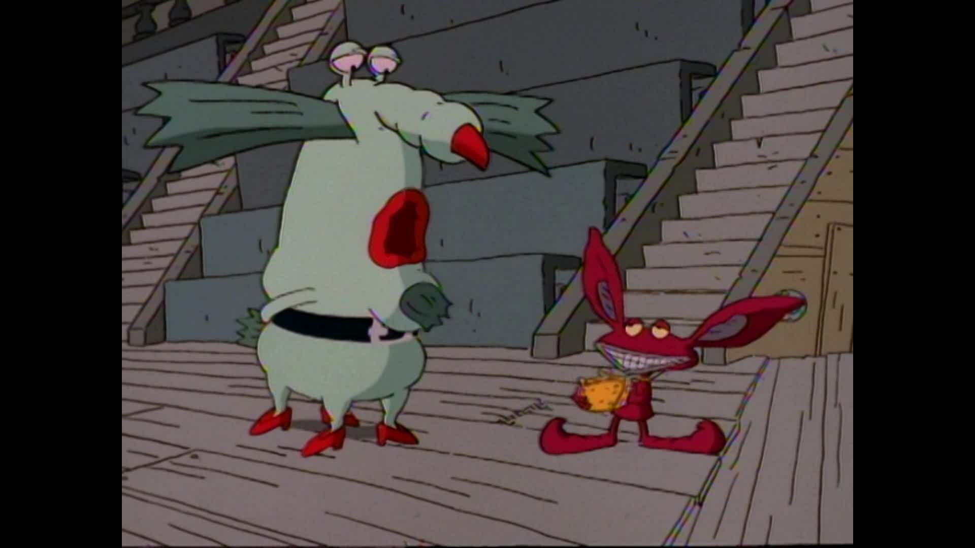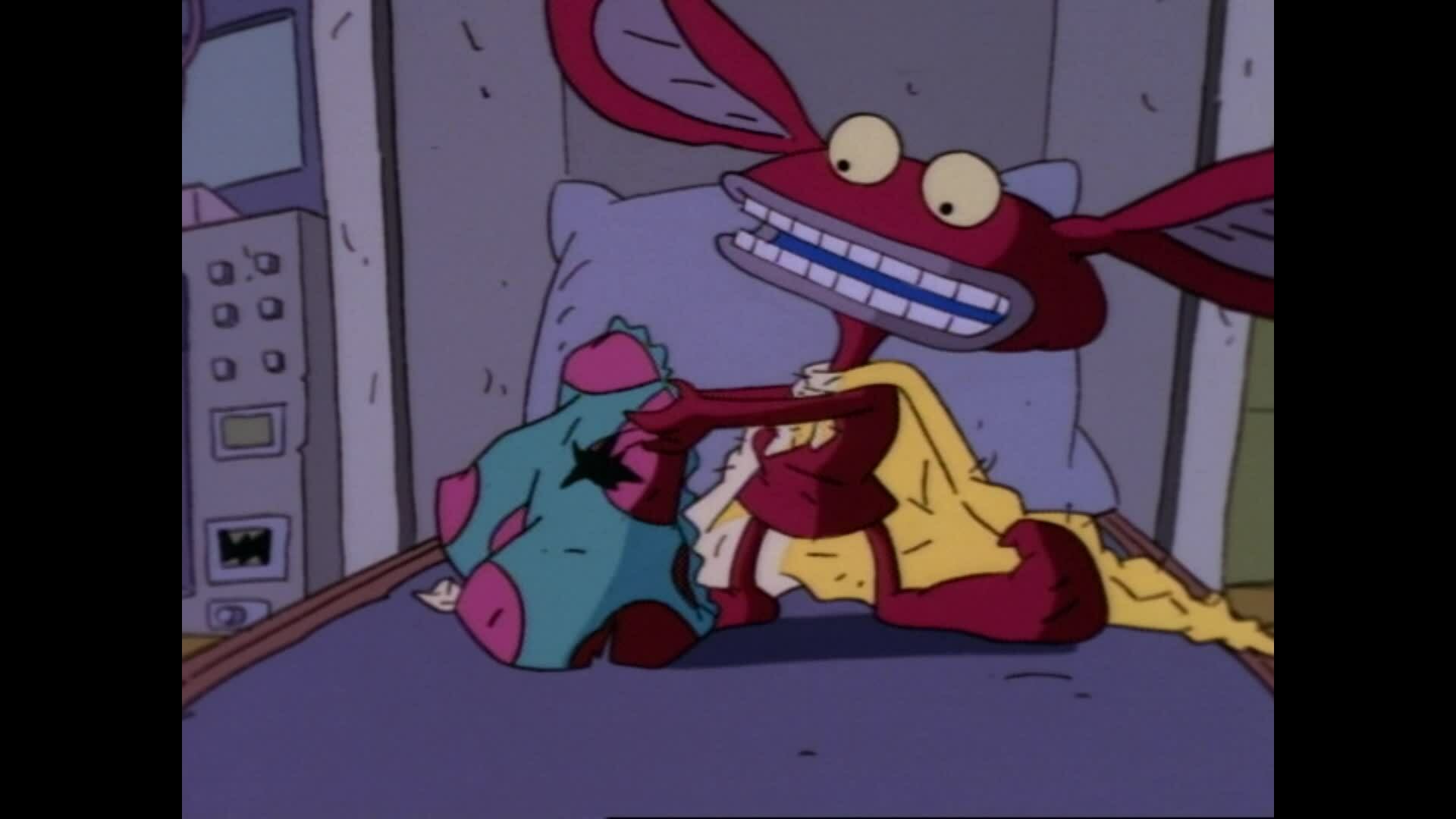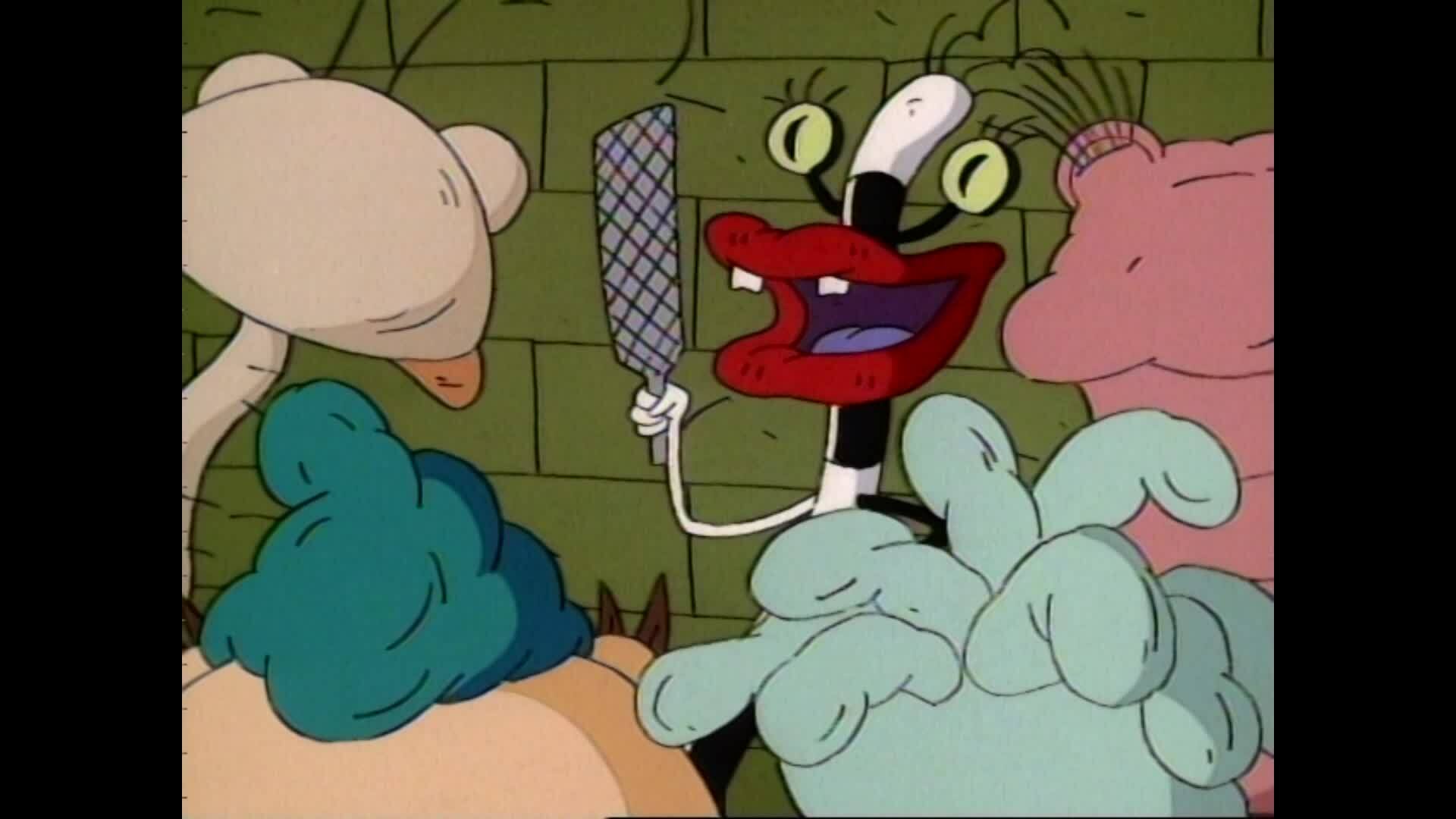 Ickis confunde lagostas com monstros e salva a vida delas. / Oblina perde seus lábios quando eles ficam presos numa construção.