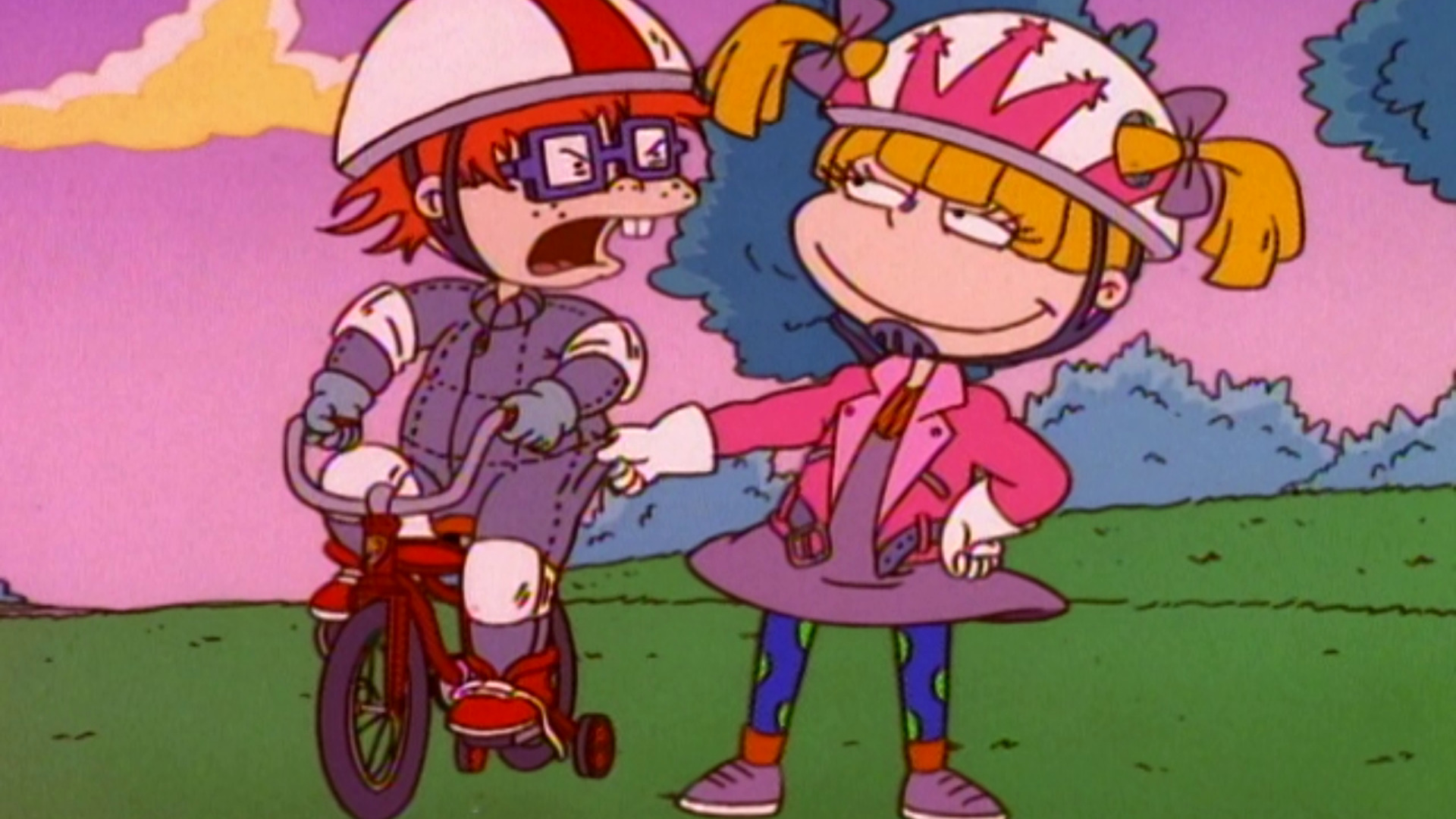 Angélica protege Chuckie quando ele ganha sua primeira bicicleta. / Os adultos deixam Lou no posto de gasolina e os bebês usam truques para fazer o carro parar.
