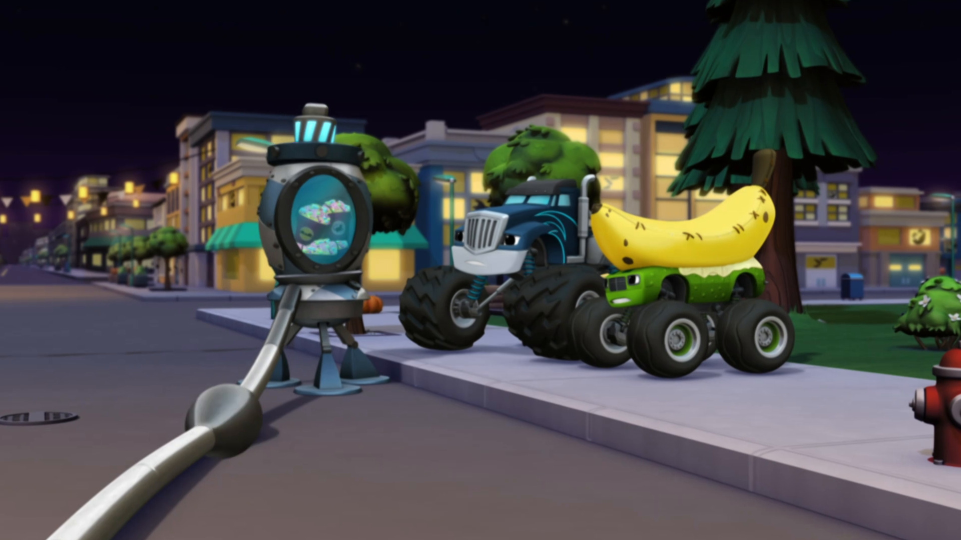 É Dia das Bruxas e Blaze, AJ e seus amigos estão pedindo doces pela cidade. Porém, Esmagador rouba todos os doces da turma e agora Blaze e seus amigos precisam recuperar suas guloseimas antes que o Esmagador coma tudo!