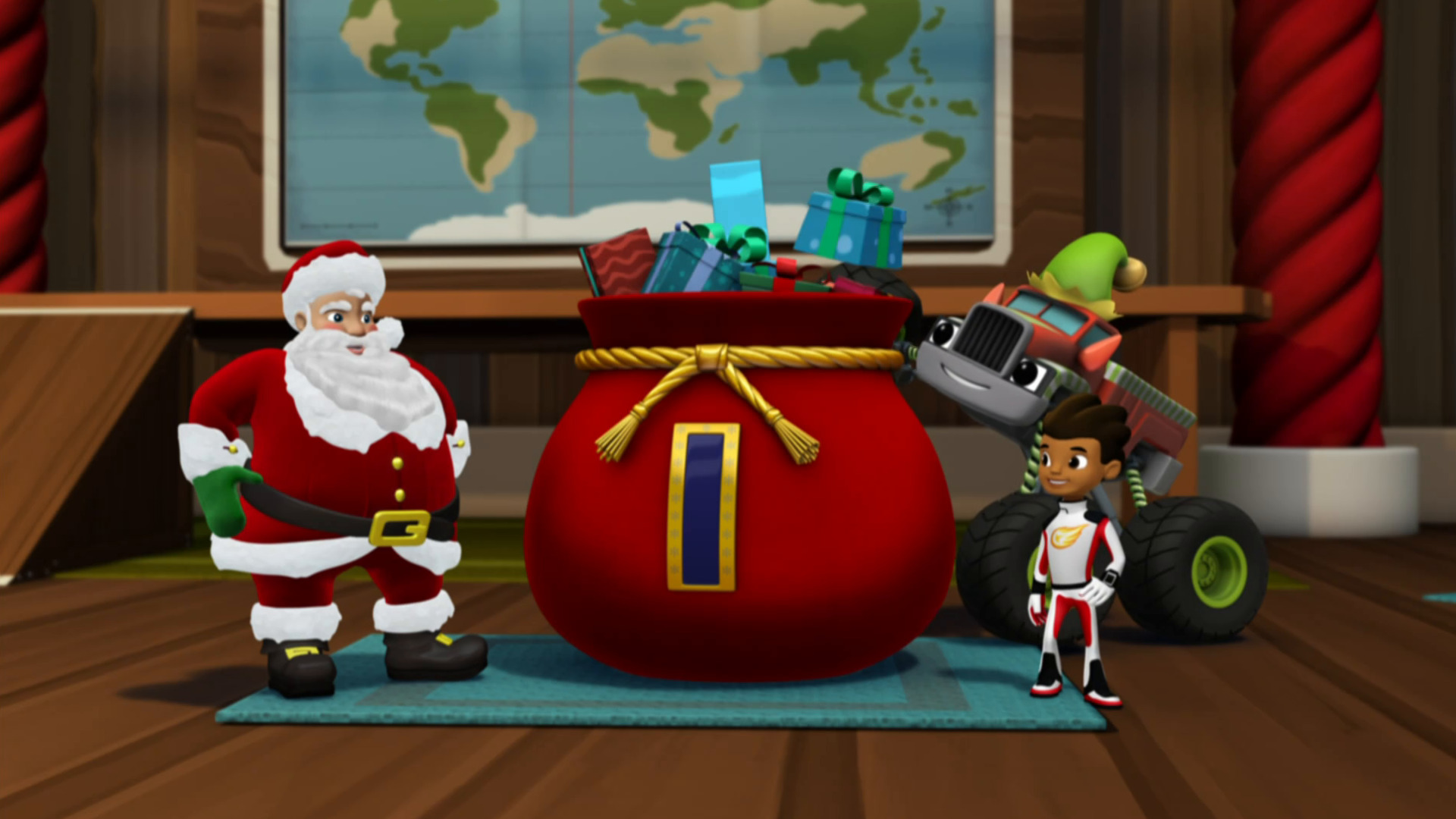 O Blaze e o AJ estão ajudando o Papai Noel a preparar o saco mágico de presentes para a entrega no dia de Natal. Por acidente, Esmagador, que estava ansioso pelo dele, faz com que todos os presentes se percam na neve.