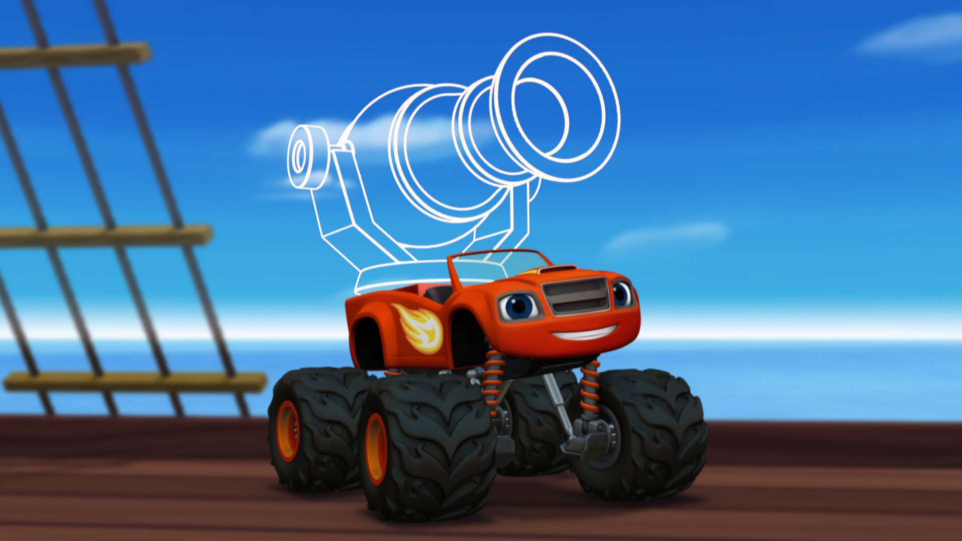 Hoje, Darington tentará a sua maior acrobacia: ir de foguete até a lua! Mas seu foguete movido a bateria está sem energia. Blaze terá que ajudar Darington a recarregar a bateria de seu foguete com toda a energia que puder encontrar, buscando energia da água, do vento e do sol. Assim, finalmente, Darington poderá voar até a lua.
