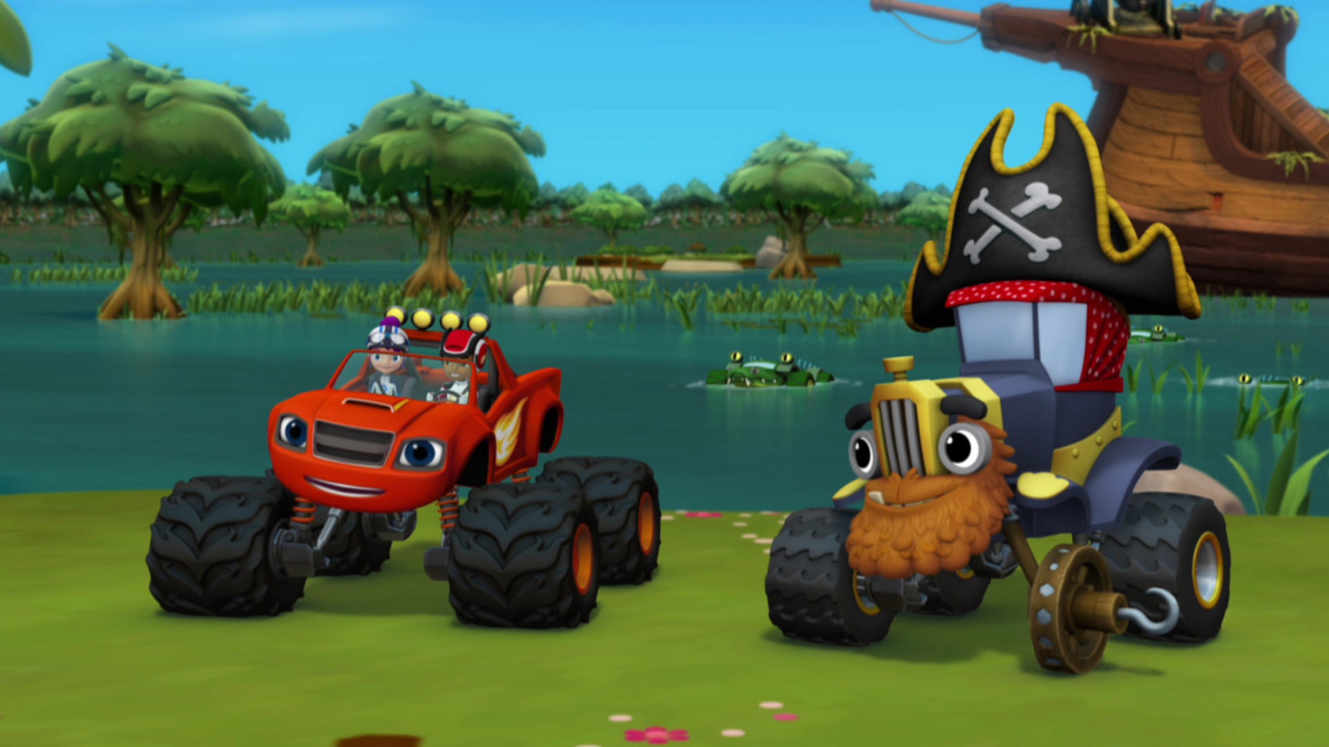 Os Monster Machines seguem cruzando o planeta para voltar à corrida até o topo do mundo. Uma vez que conseguem atravessar o deserto, eles entram no oceano e conseguem um velho barco pirata que os ajudará a chegar ao outro lado. Os amigos precisam enfrentar piratas no meio do oceano, mas, mesmo assim, conseguem superar os obstáculos até chegarem na selva e, finalmente, voltar à corrida até o topo do mundo.