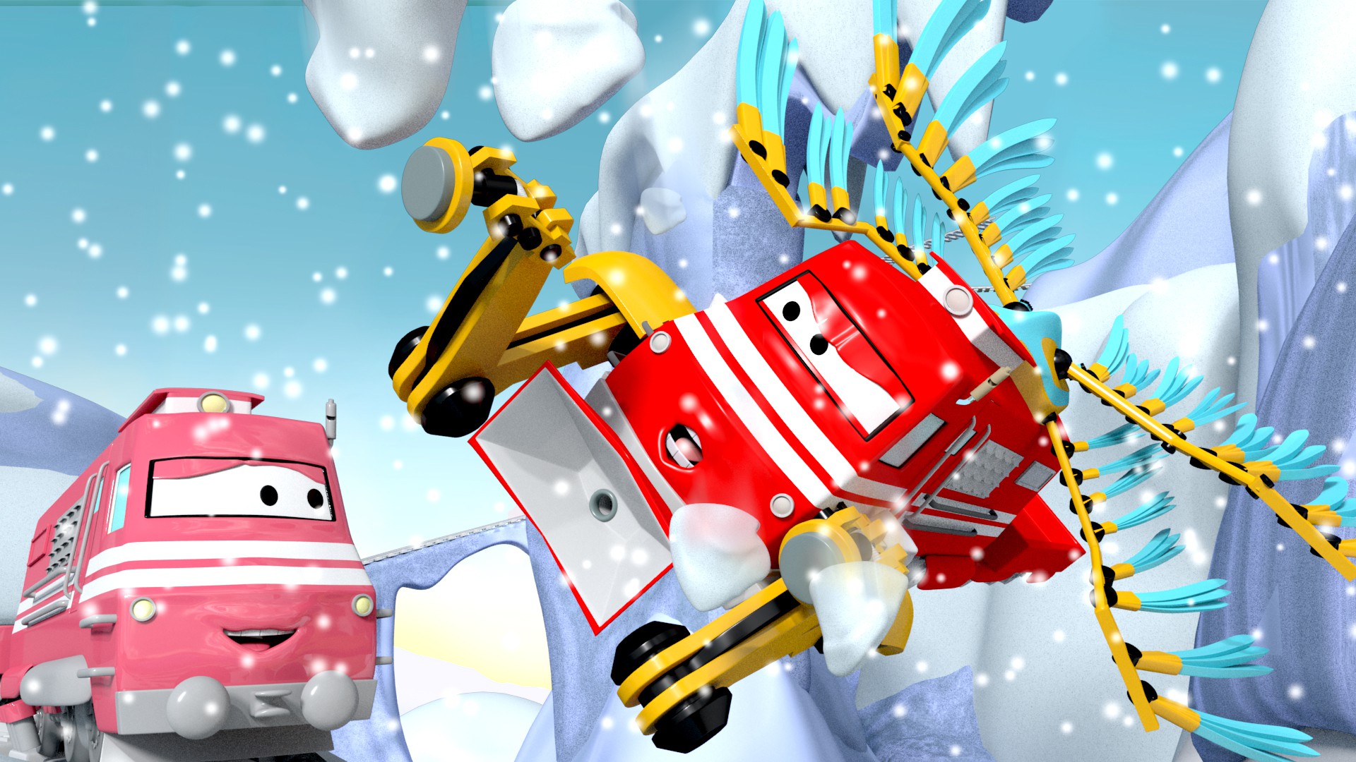 O Trem de Aquecimento / Troy congela o lago / O Trem Rena e o túnel perigoso / Troy, Tina e senhor Byron descem de trenó a montanha nevada