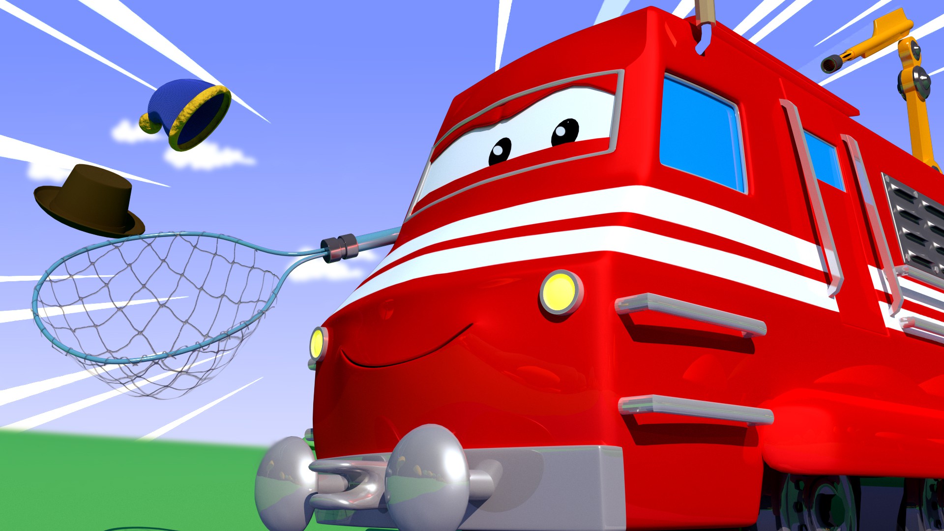 O chapéu da Tina voa para o céu / Videogame FIFA / O trem salva-vidas / O trem soldador