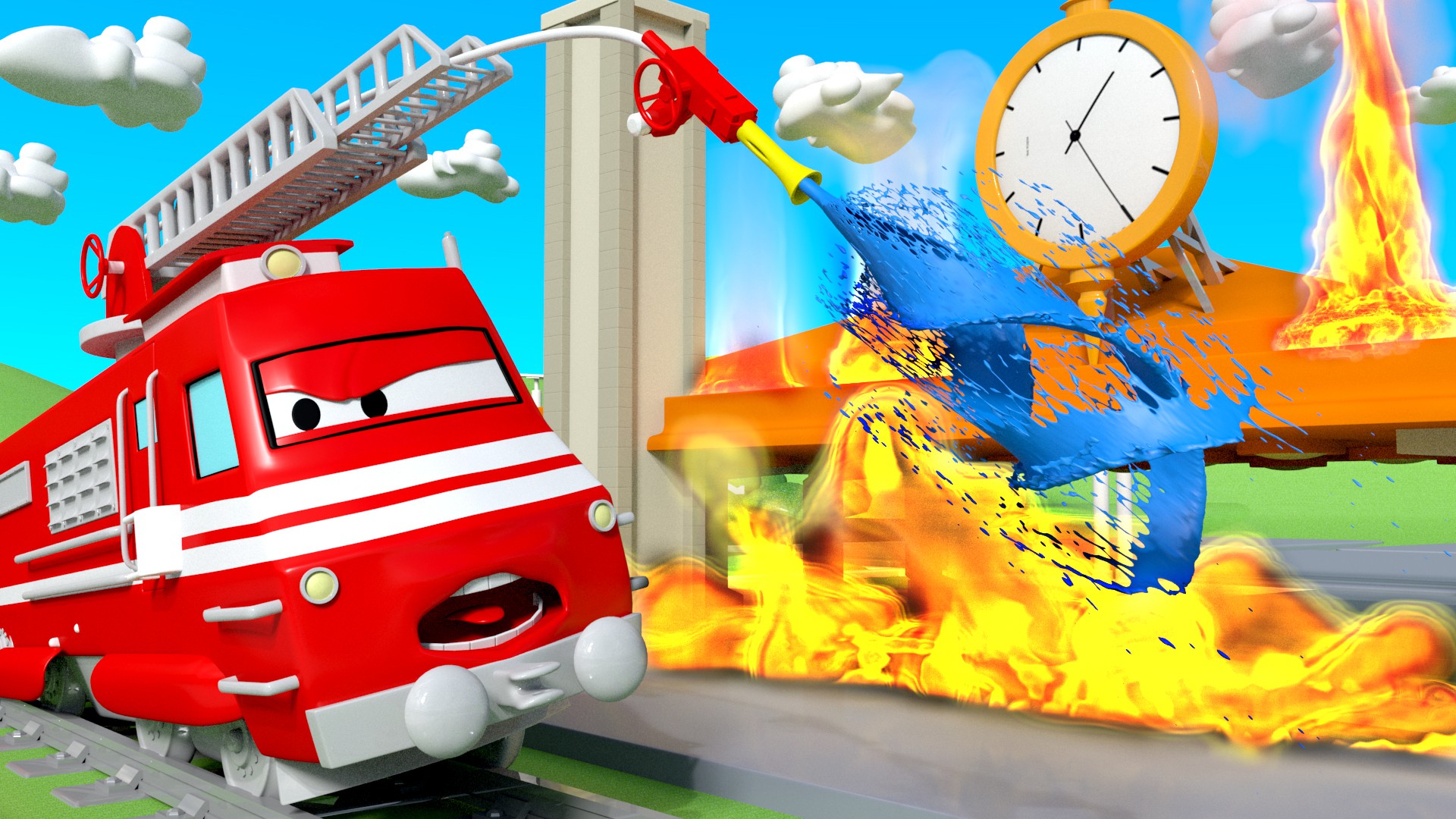 Carl o Caminhão de Bombeiros / Rocky voa para o espaço / Dane destrói um antigo edifício / Bobby está afundando