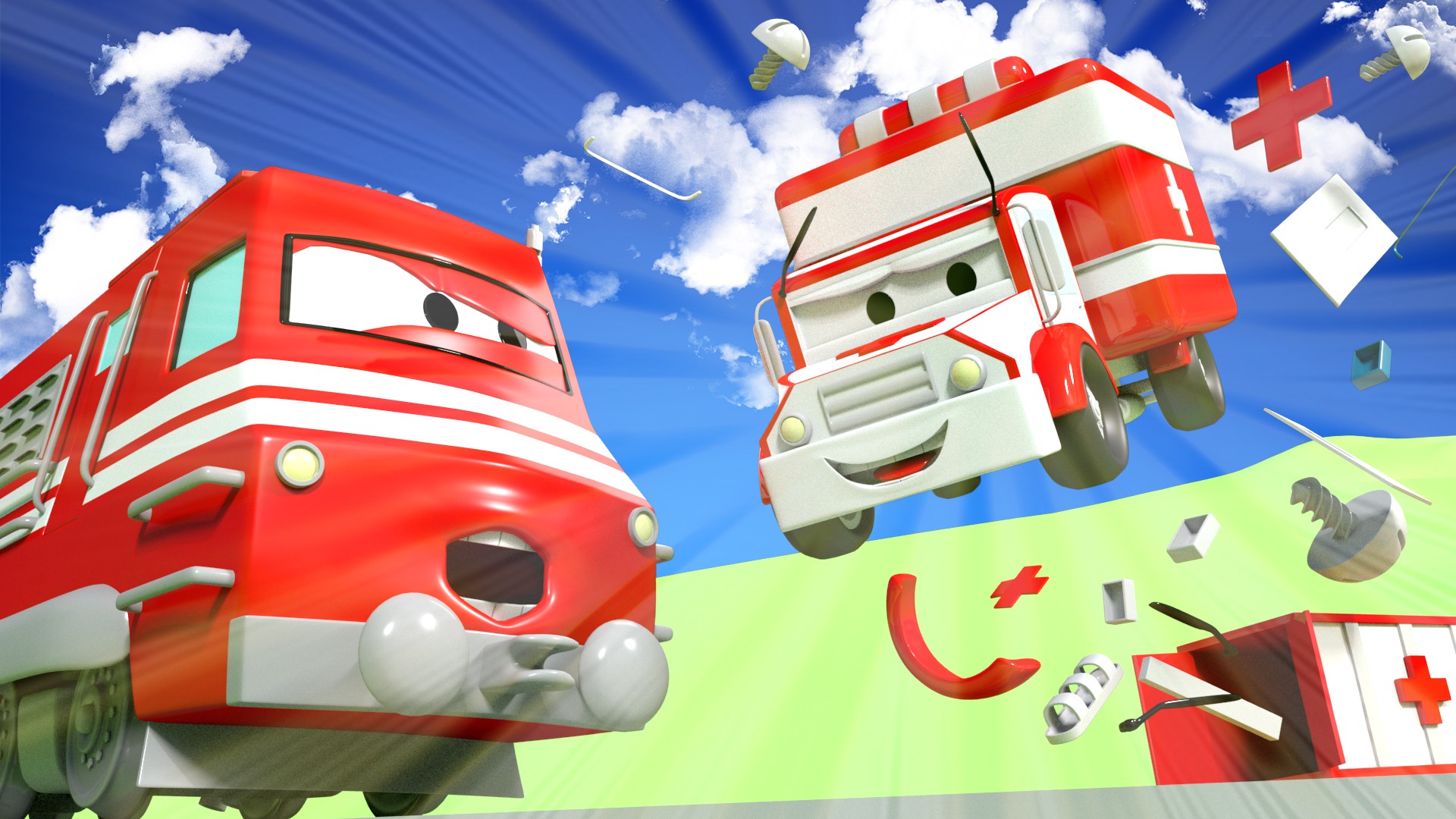 Charlotte leva seus amigos para o hospital / Rocky o foguete conserta o satélite no espaço / Matt, o carro de polícia / O último jogo de frisbee