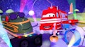 Troy o trem jardineiro encontra Lord Byron / Troy o Trem Aspirador / Troy viaja para o espaço / Troy se transforma em um avião a jato
