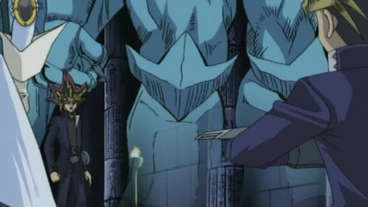 Atem invocou todos os três deuses egípcios! Que chance Yugi tem contra essas criaturas poderosas que ninguém foi capaz de derrotar? É melhor que Yugi bole logo uma estratégia, ou esse duelo acabará rápido!