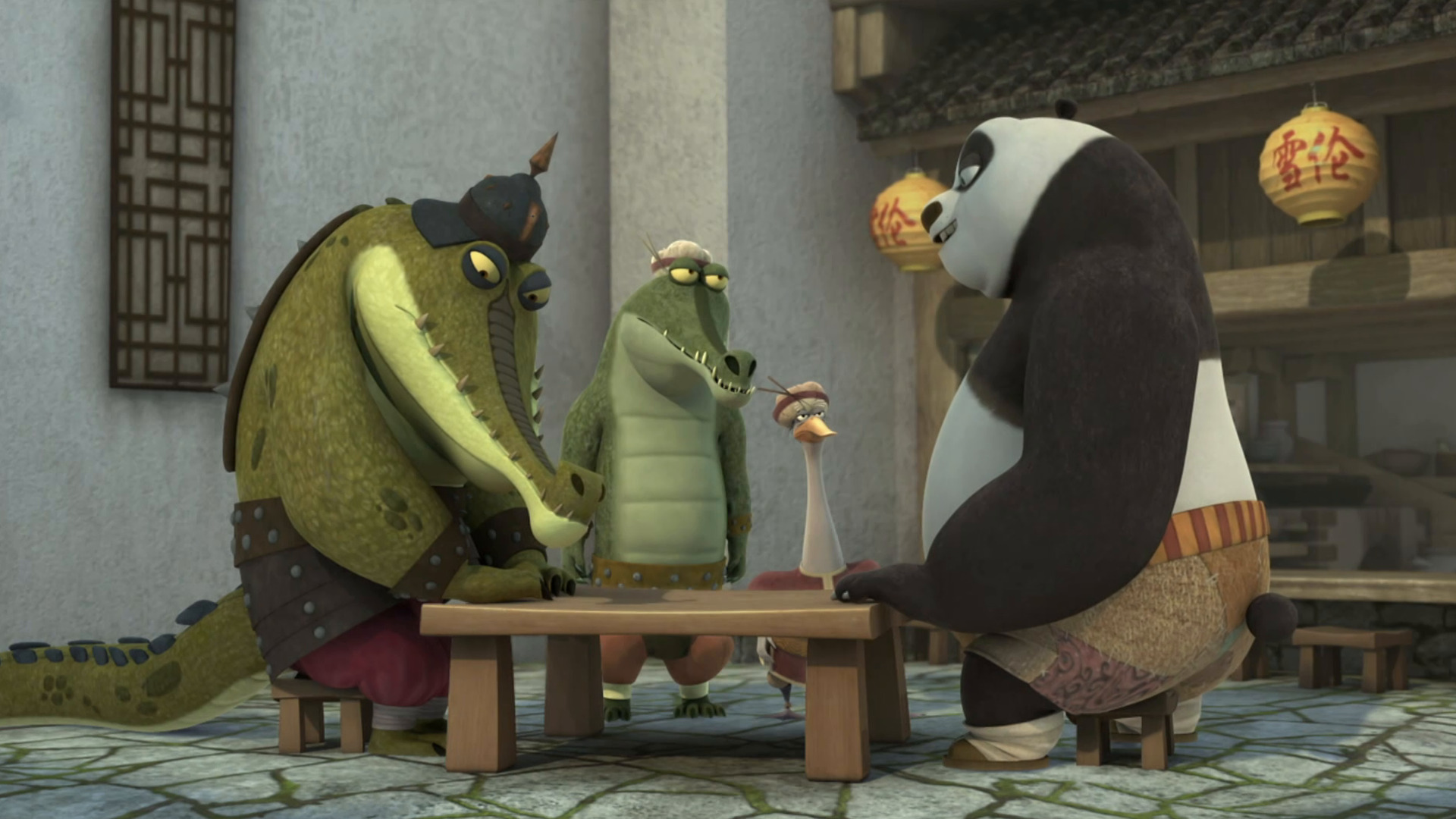 Quando os crocodilos bandidos brigam entre si, resta a Po e ao Senhor Ping tentar reverter essa situação.