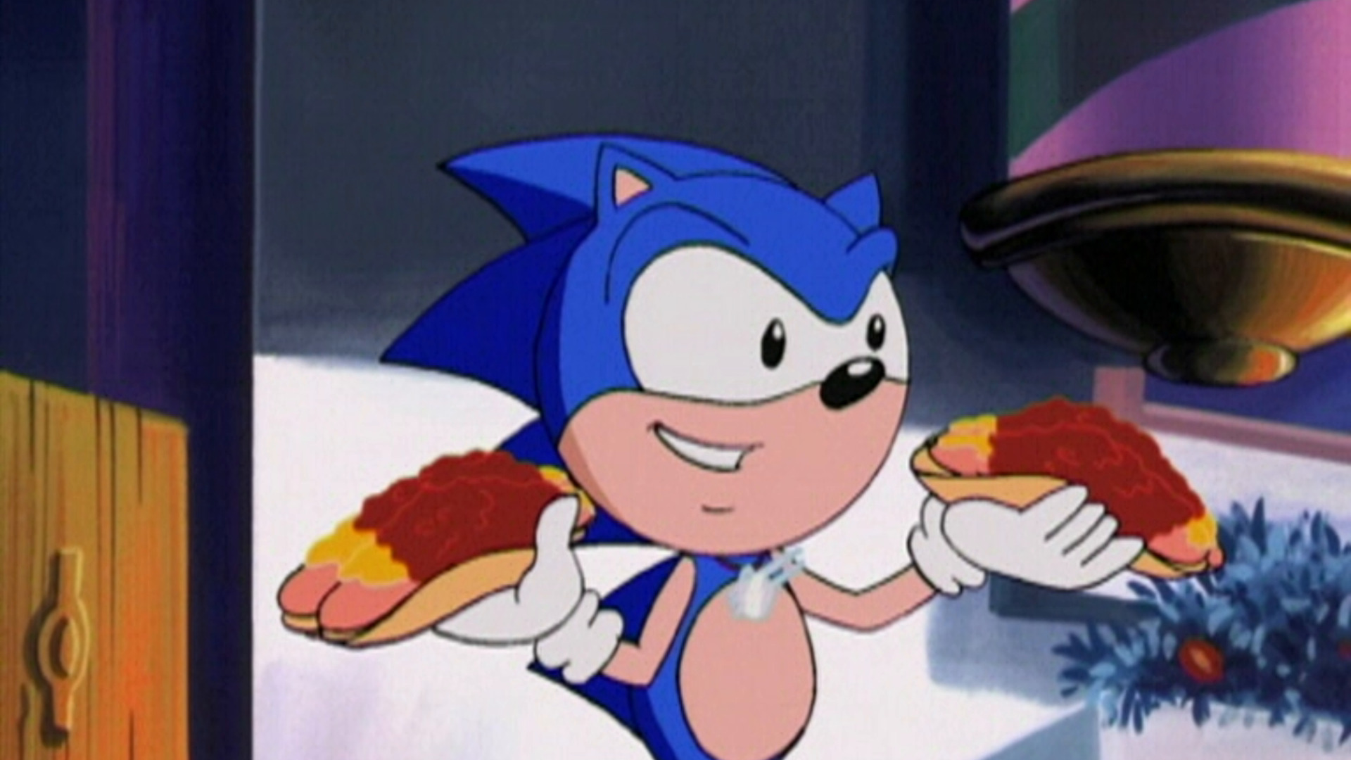 Sonic começa a mastigar um cachorro-quente e acha uma mensagem da sua mãe que implora que ele vá à Ilha de Alta Velocidade.