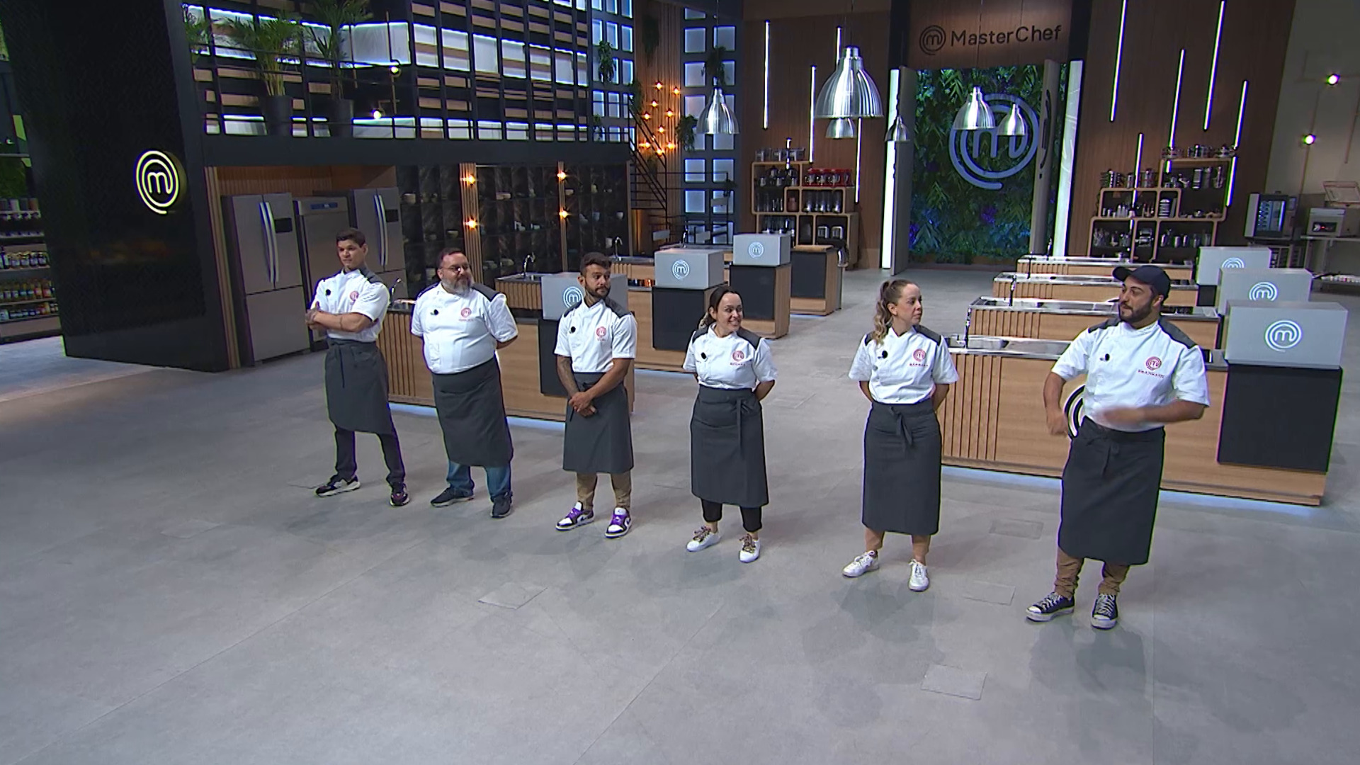 Os 14 chefs encontram ingredientes icônicos exibidos como obras de arte na cozinha.
