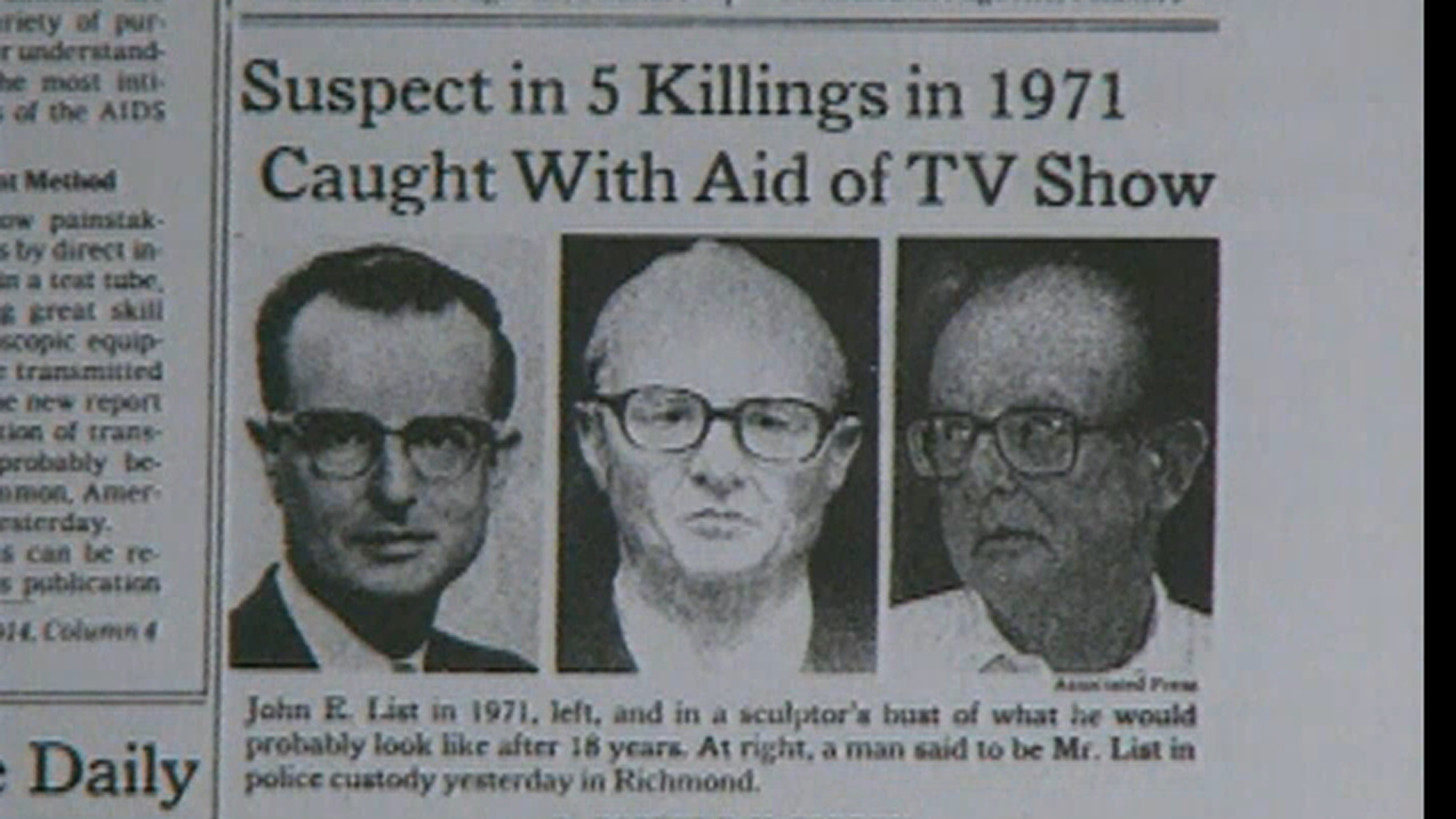 In 1971, John List left a note with the bodies of his mother, wife and three children in his mansion ballroom before disappearing completely. Detectives must solve the case, despite having only an outdated photograph of List.
