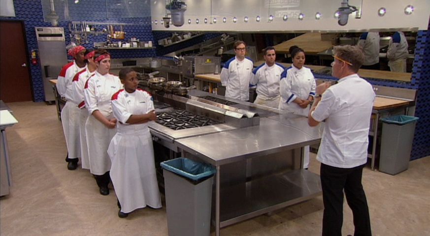 The chefs must make two servings of their own amuse-bouche, which will be judged by Chef Ramsay and "Epicurious" editor in chief Tanya Steel.