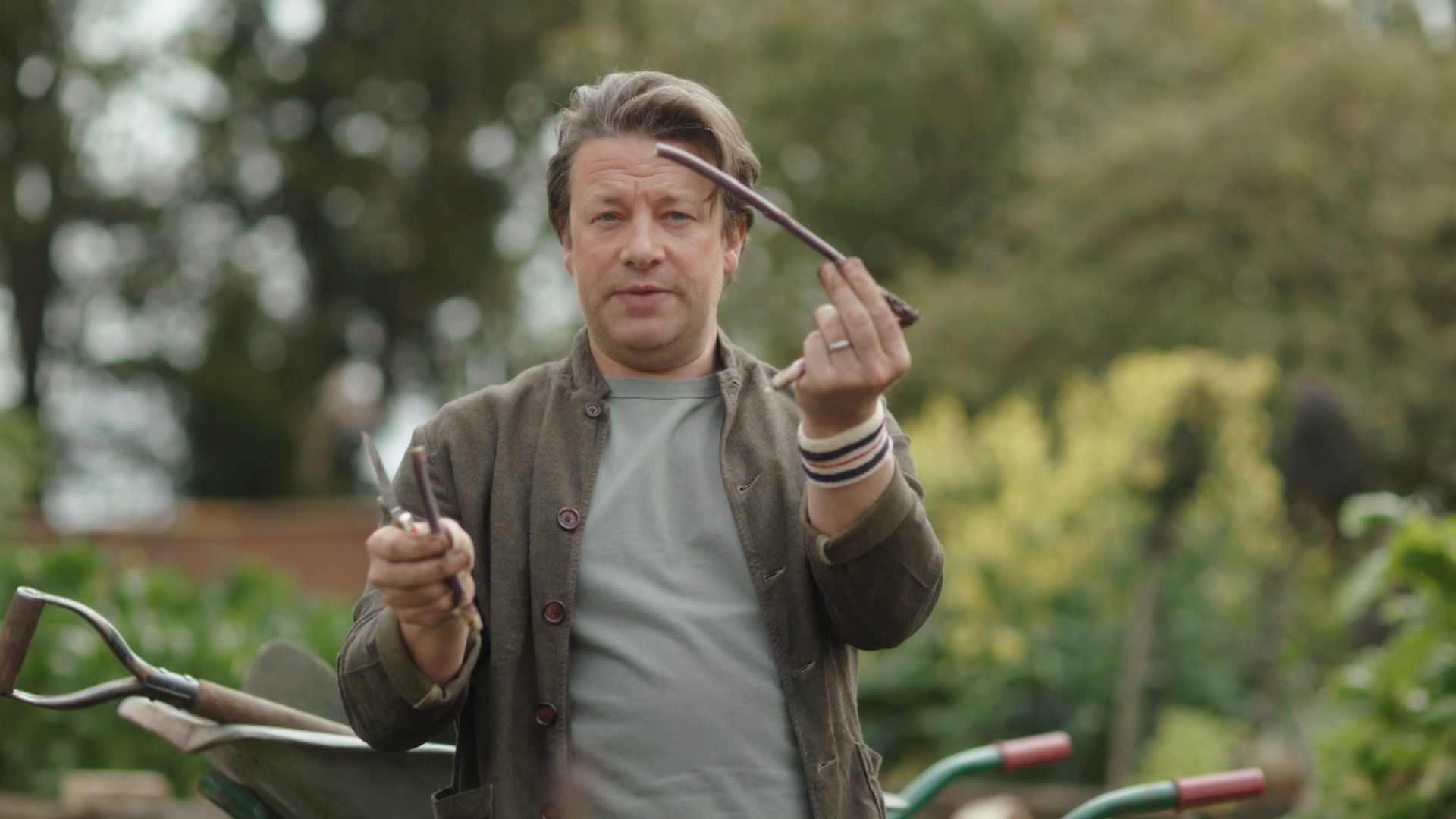 Som start på serien fejrer Jamie rabarbernes syrlighed ved at lave en sauce til marineret svinekød, der er perfekt til foråret. Han laver også en silkeblød risotto med spinat og gedeost.