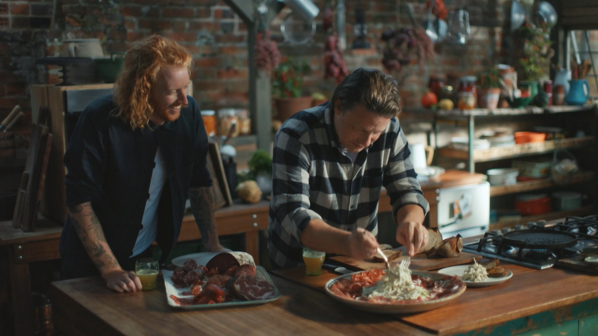 Til årets julefrokost laver Jamie en lækker frisk og syrlig røget ørredpaté, der serveres med rødkålsslaw og en kæmpe yorkshirebudding til deling.