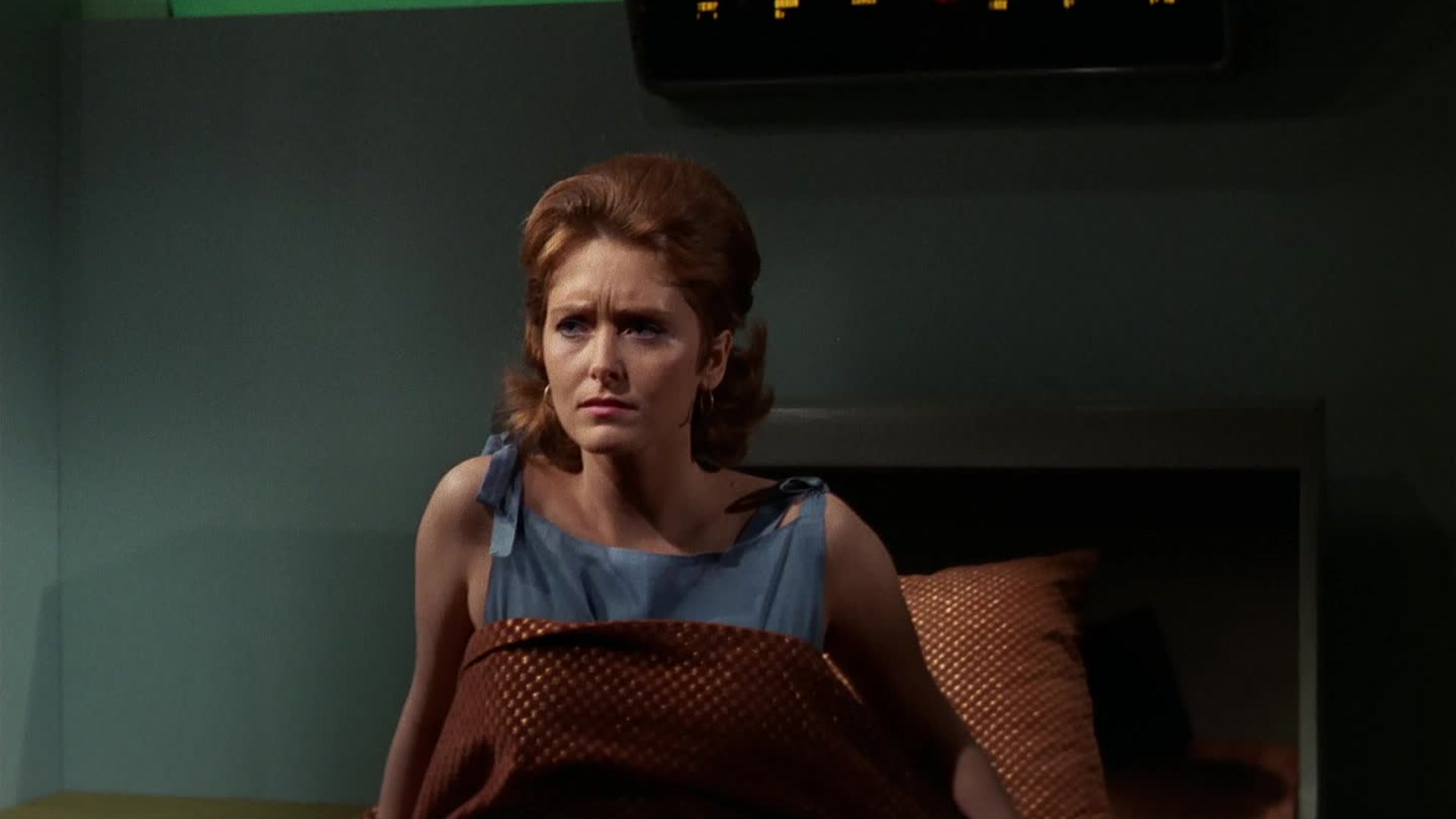 Miranda Jones, a telepath who studied mental disciplines on Vulcan, arrives with Ambassador Kolos, a Medusan.