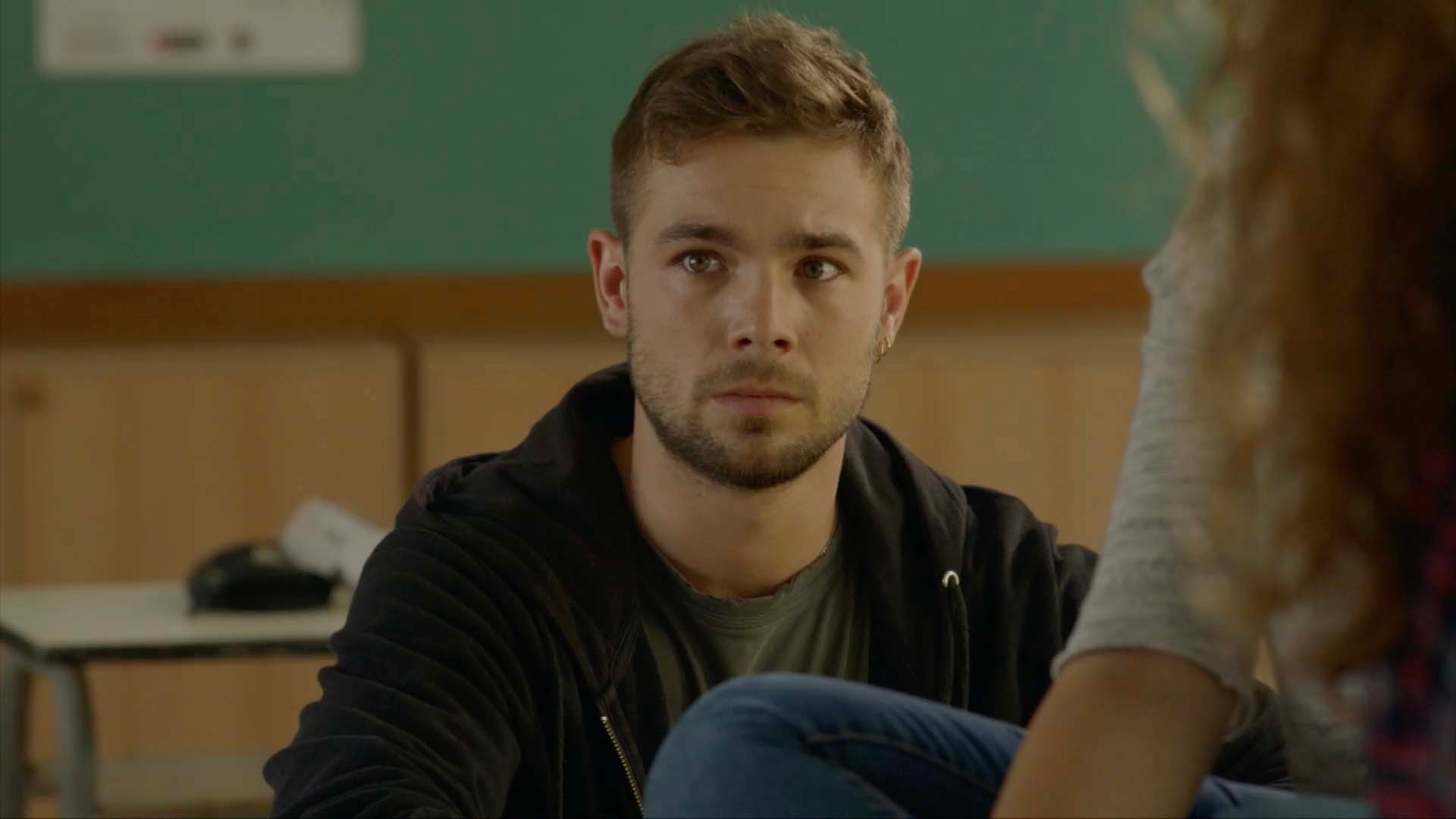 El Merlí té el dia girat, no deixa entrar l'Oksana amb el seu fill a classe i la noia s'enfada molt.