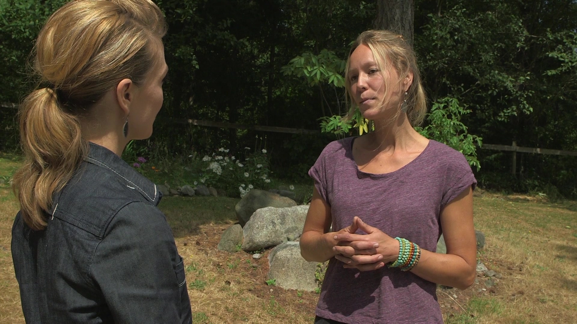 Evelyne rencontre Inga Schumann, propriétaire d’un chalet hors du commun : une yourte. Son chalet situé sur l’île Cortes est entouré d’arbres matures et sent bon l’air salin du détroit de Georgia, tout près.