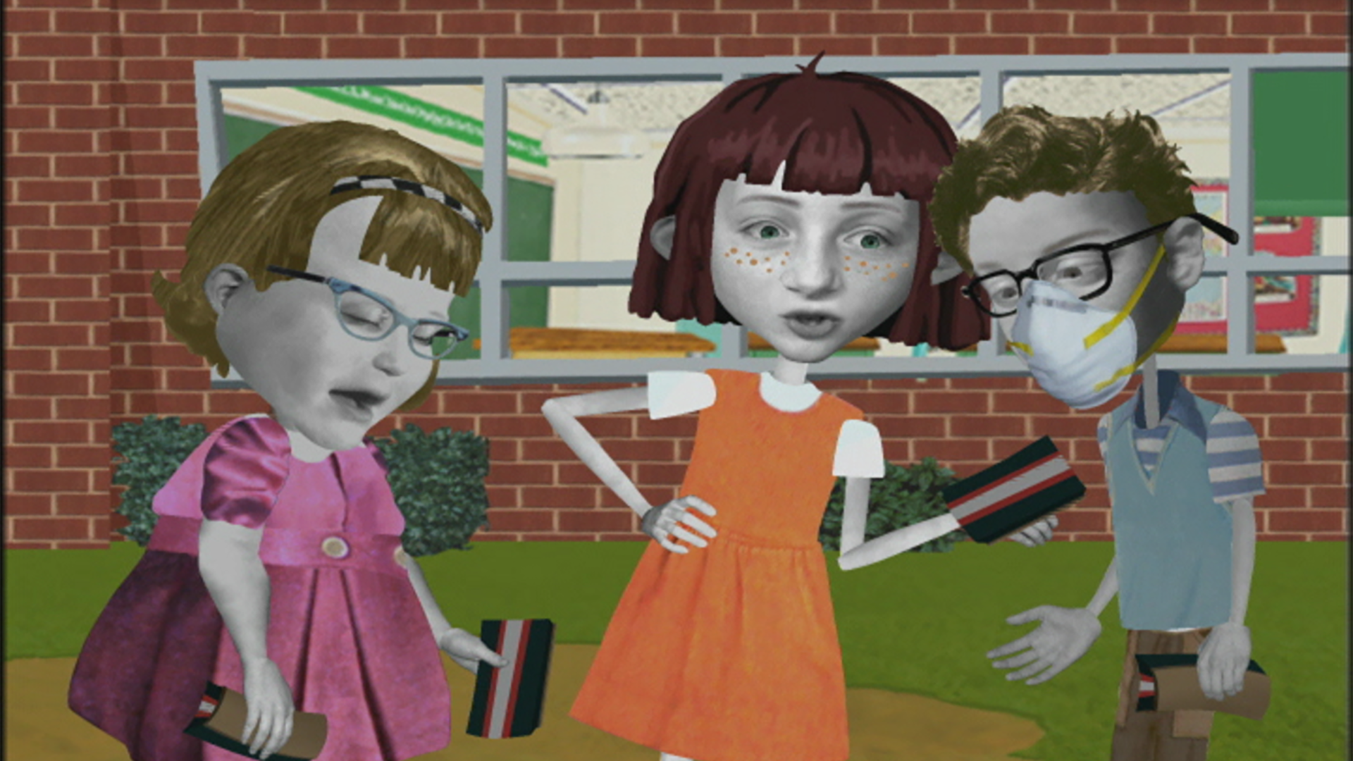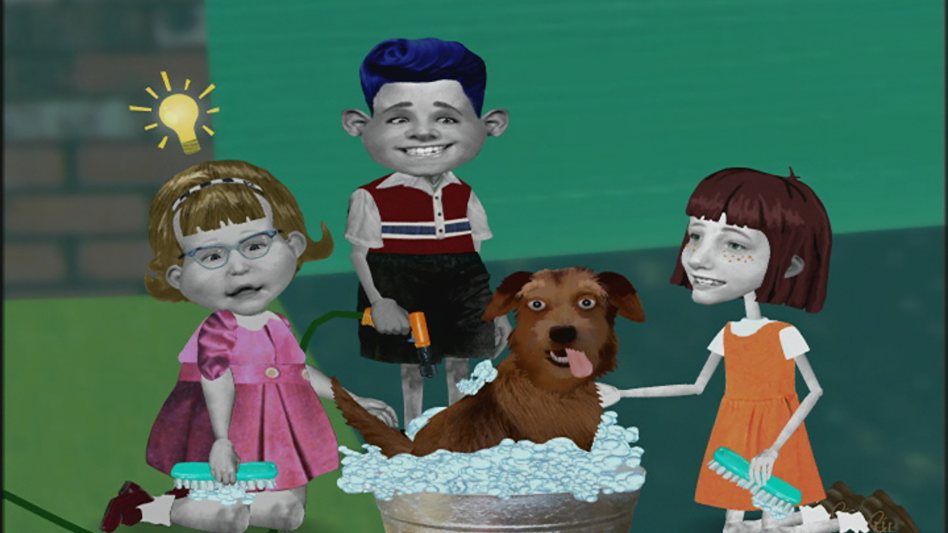 Angela et ses amis shampouinent des animaux pour financer une sortie de classe. // Mme Pète-Sec emmène les élèves au musée et leur présente Bob l’astronaute.