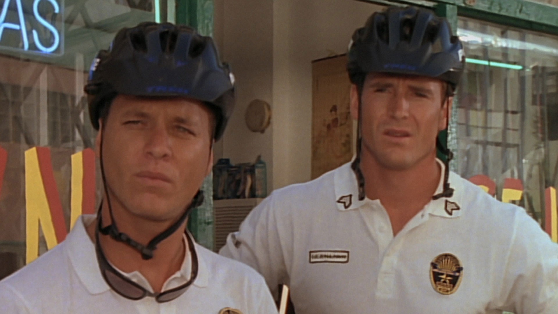 Des agents à vélo patrouillent sur les plages et dans la ville environnante de Santa Monica, en Californie