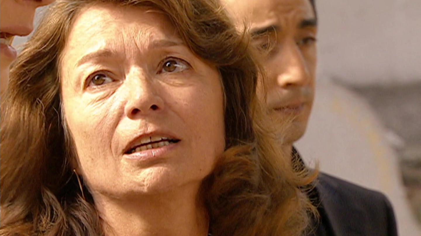 Très affectés, Véra et Léo regardent l’ambulance emmenée Djamila inconsciente. Véra insiste pour aller annoncer la nouvelle à la famille.