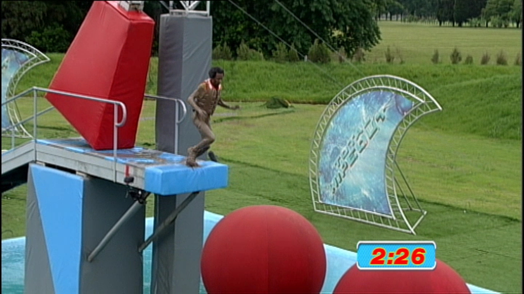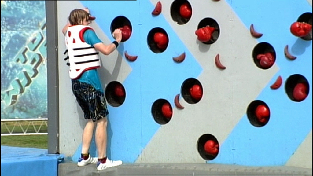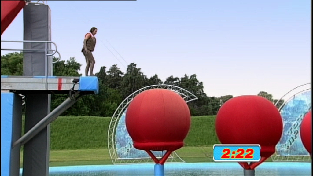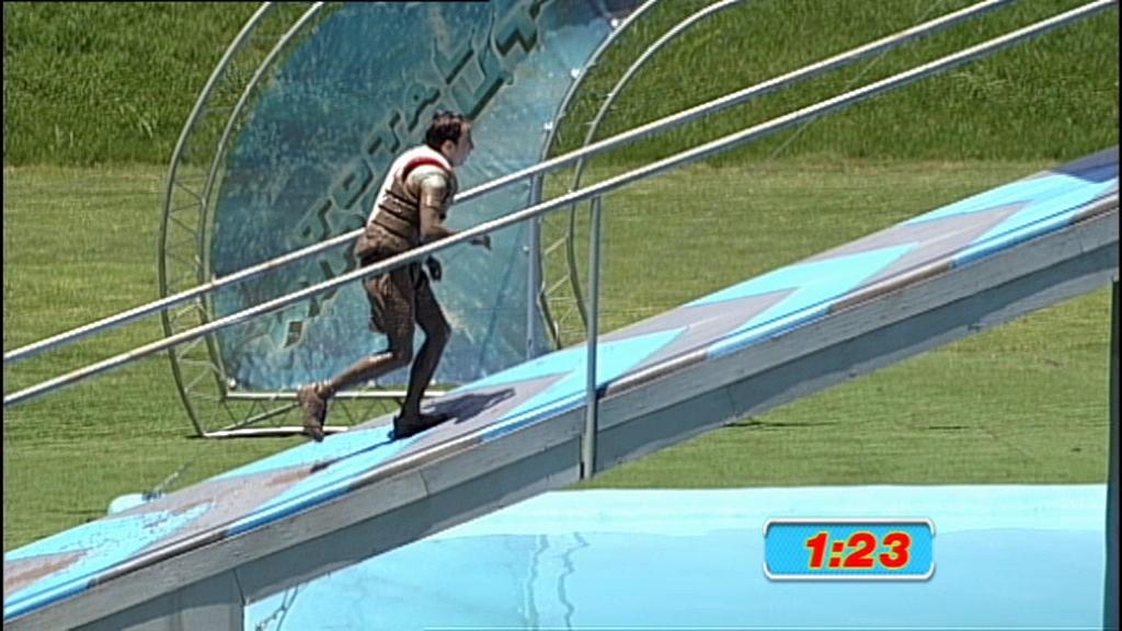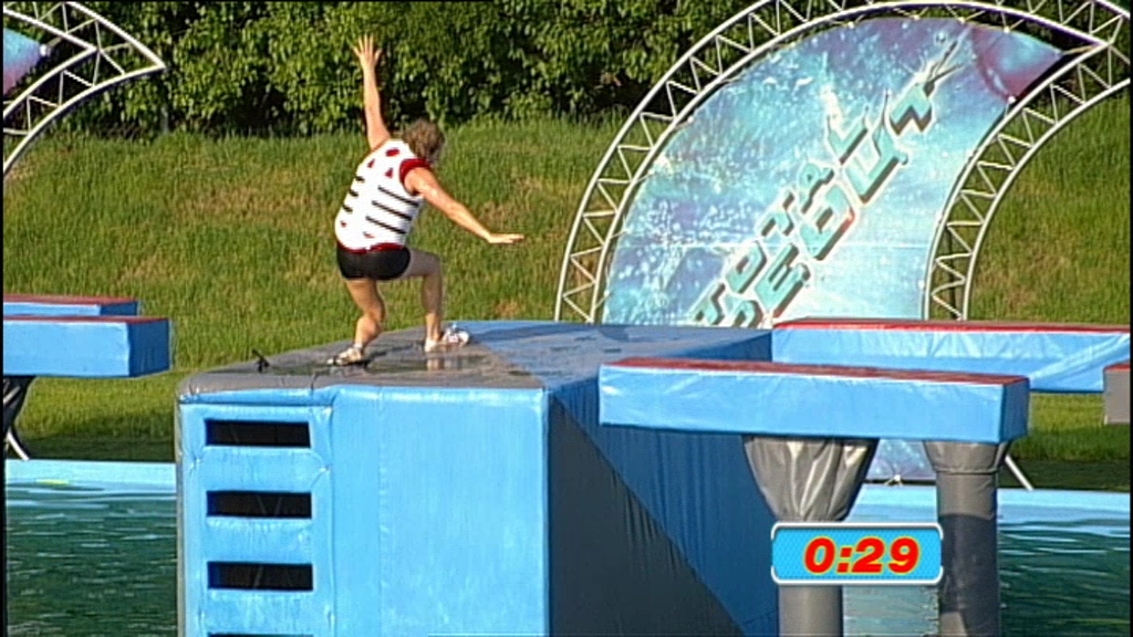 Twenty contestants take on the obstacle course. Challenges include the Crash Mountain.