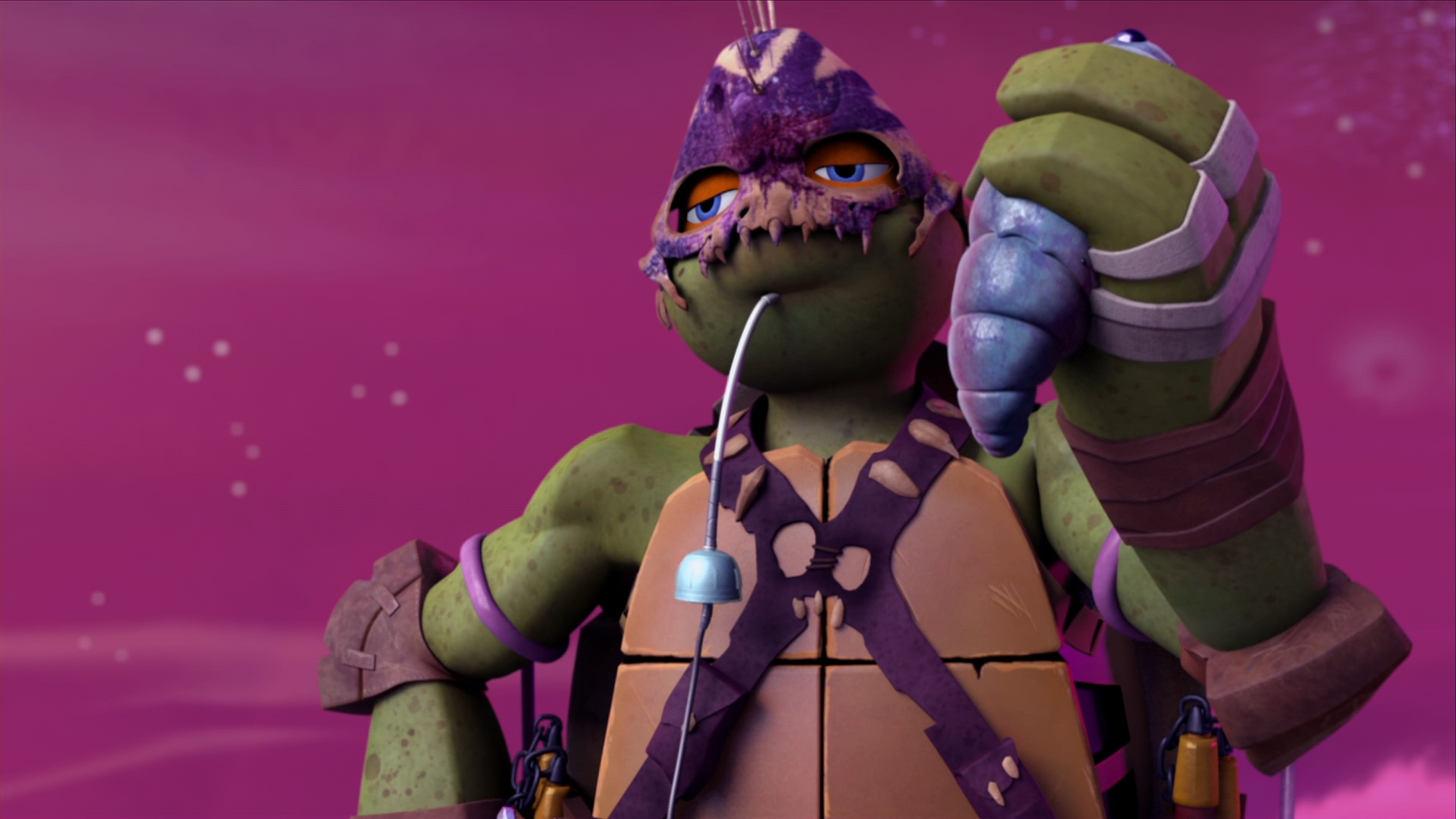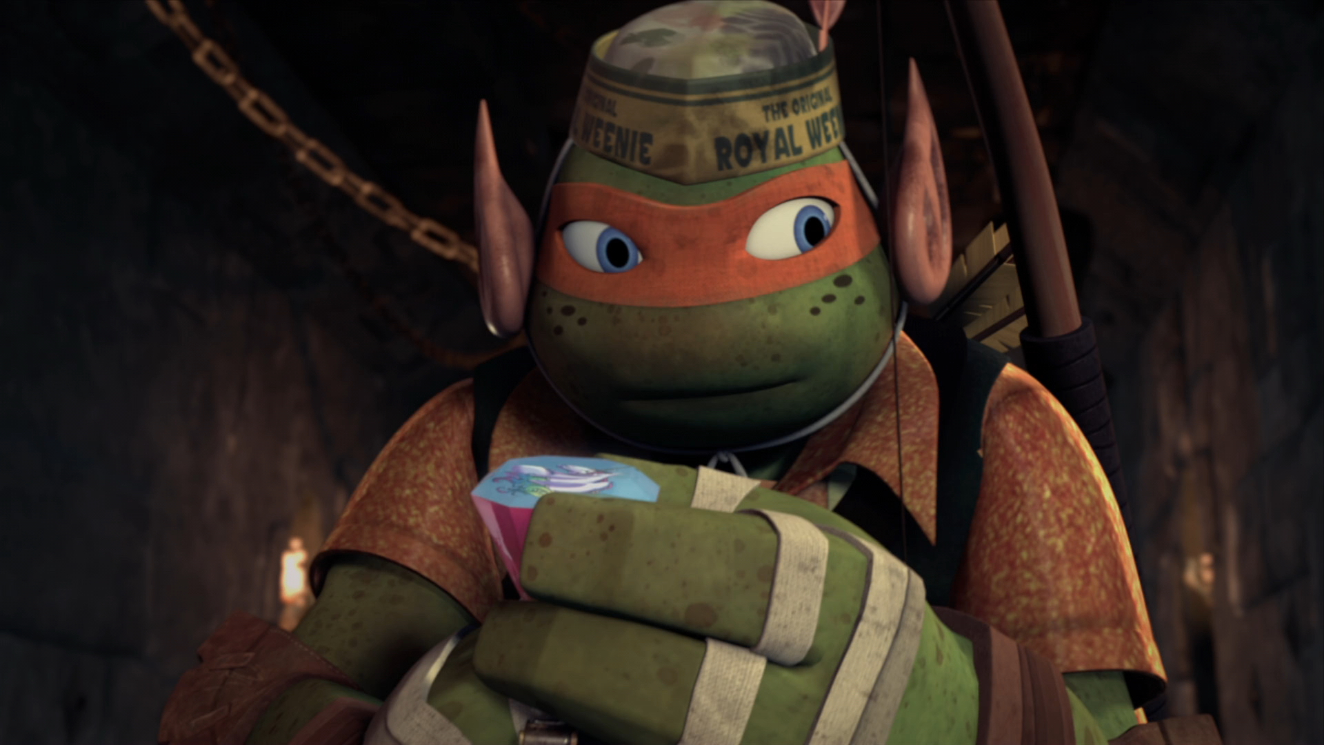 At home, Mikey always messes things up, but when the Turtles go to the bizarre realm of Dimension X, he's the only one who can figure the place out.