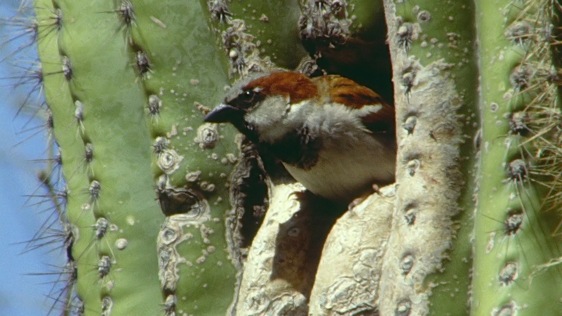Riesenkakteen, hier in Südarizona ersetzen sie die Bäume. Spechte meißeln darin ihre Höhlen und viele Vögel nutzen diese Spechtwohnungen. Auf den Säulenkakteen bauen Greifvögel ihre Horste. Das stachelige trockene Land ist Heimat von erstaunlichen Tieren.
