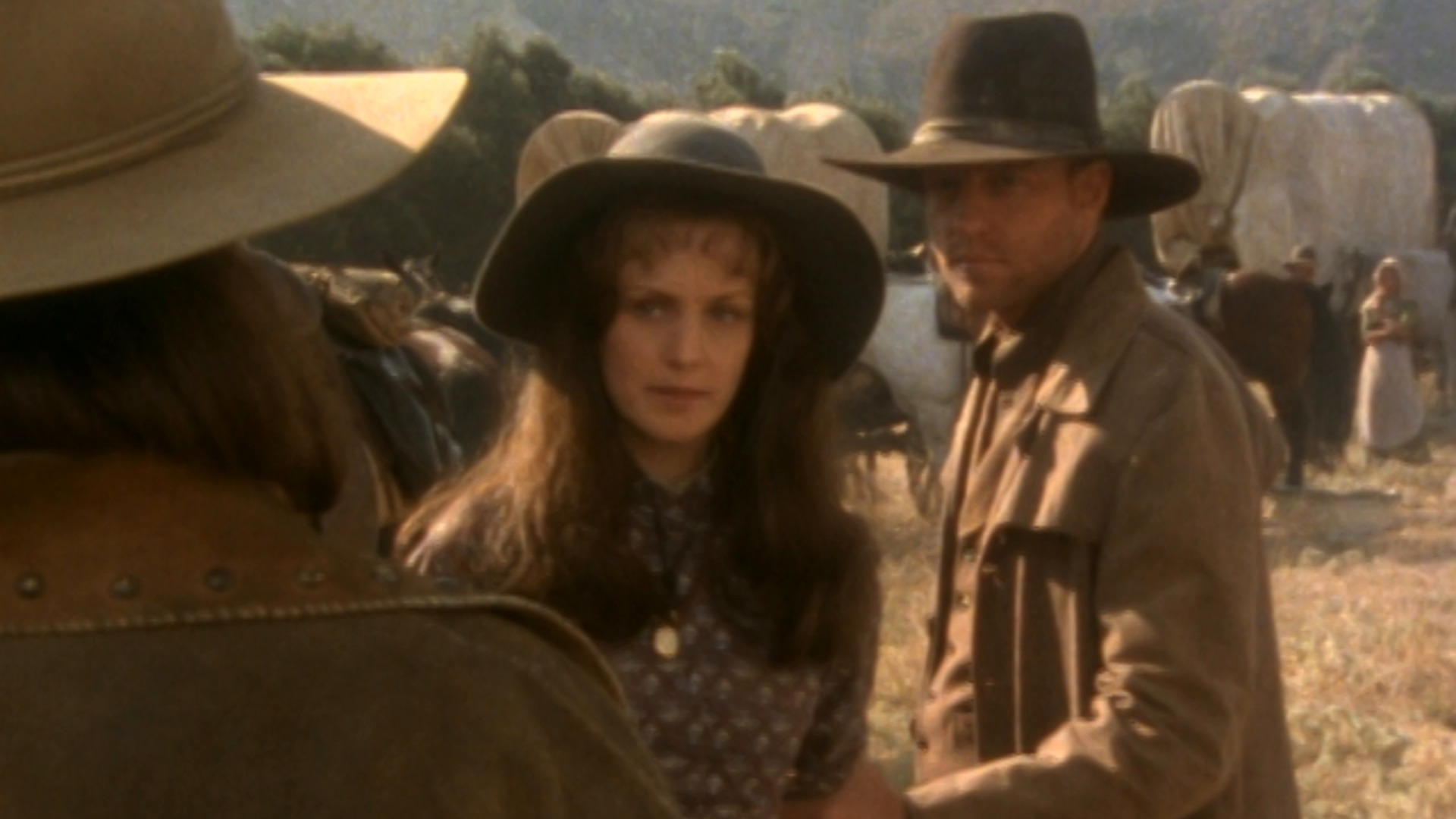 Richter Travis "bittet" die Sieben, einen Treck zu begleiten, dessen Ziel Ländereien sind, die ein Rancher den Siedlern wegnehmen will. (Teil 1 von 2)