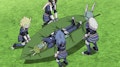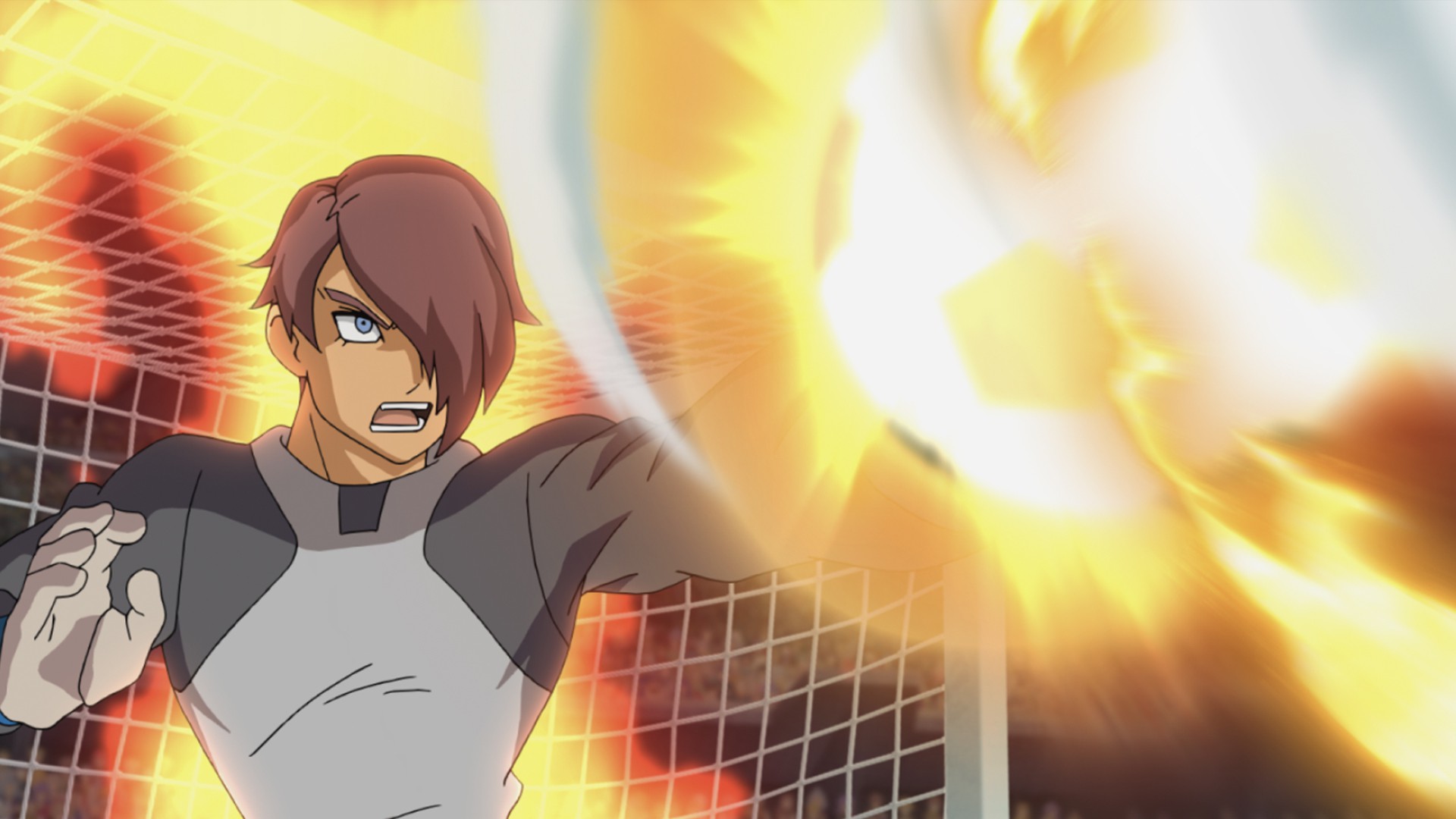 Dopo aver segnato il primo gol, Ruger e Gandares sono di nuovo davanti a Terry, ma questa volta il pericolo viene scongiurato dall’intervento di ben tre giocatori della Earth Eleven.