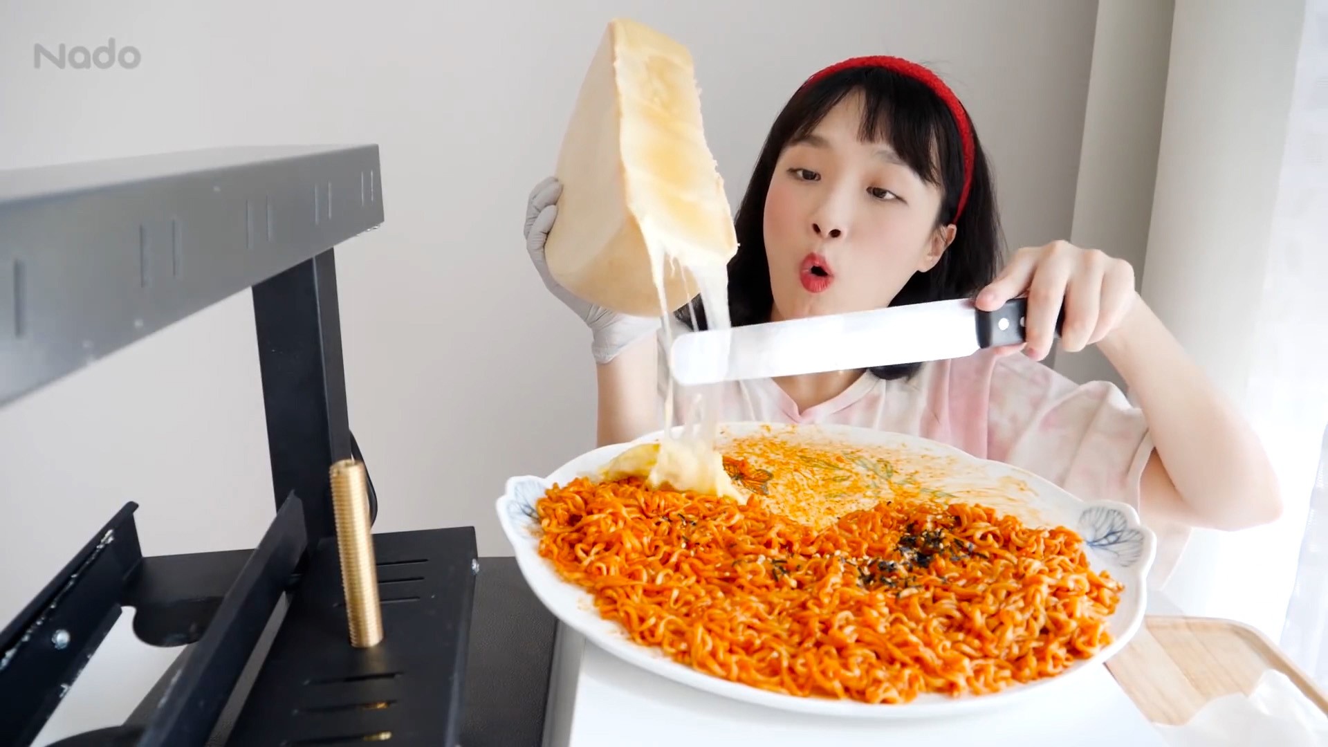 Unisciti a Nado mentre si concede piatti di ramyeon al formaggio, ognuno una deliziosa rivelazione formaggiosa.