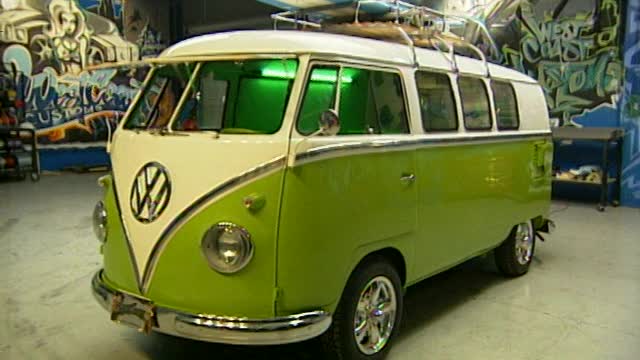 Xzibit enchula un Volkswagen Bus '58 al estilo safari, con un color lima limón, piso de madera, un monitor LCD y una mini secadora integrada.