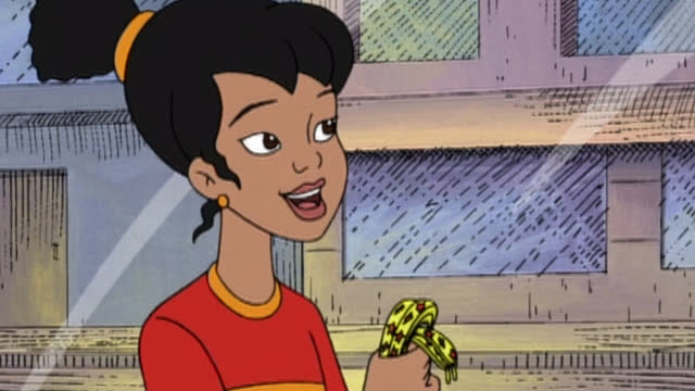 Lisa viaja en el subetrráneo con corduroy. / Accidentalmente lisa tira una maseta con un girasol a la calle.