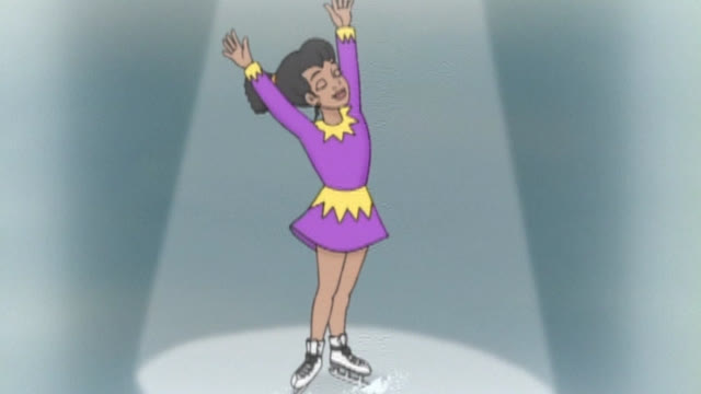 Lisa no sabe patinar, entonces se cae una y otra vez sobre la pista de hielo. / Corduroy se había resbalado y Lisa llamaba a la ambulancia -buckaroo.