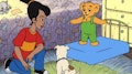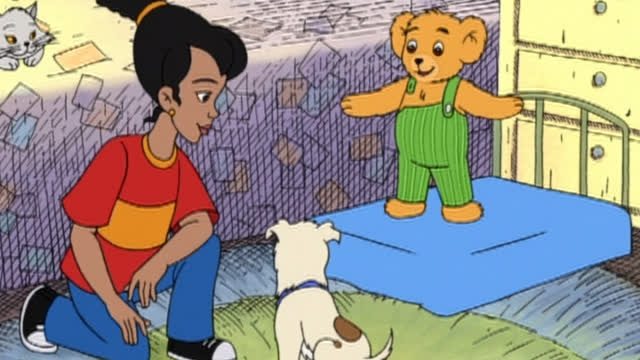 Lisa, Rosetta y Corduroy van a la galería de arte. / Corduroy y Lisa están jugando en el parque.