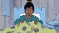 Después de que lisa le leyó un cuento a Corduroy, se disponen a dormir. / Corduroy y buckaroo van a explorar por la casa.