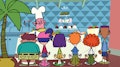 Todd come un platillo de champiñones preparado por la señorita Mush. / La señorita Mush renuncia a la cafetería.