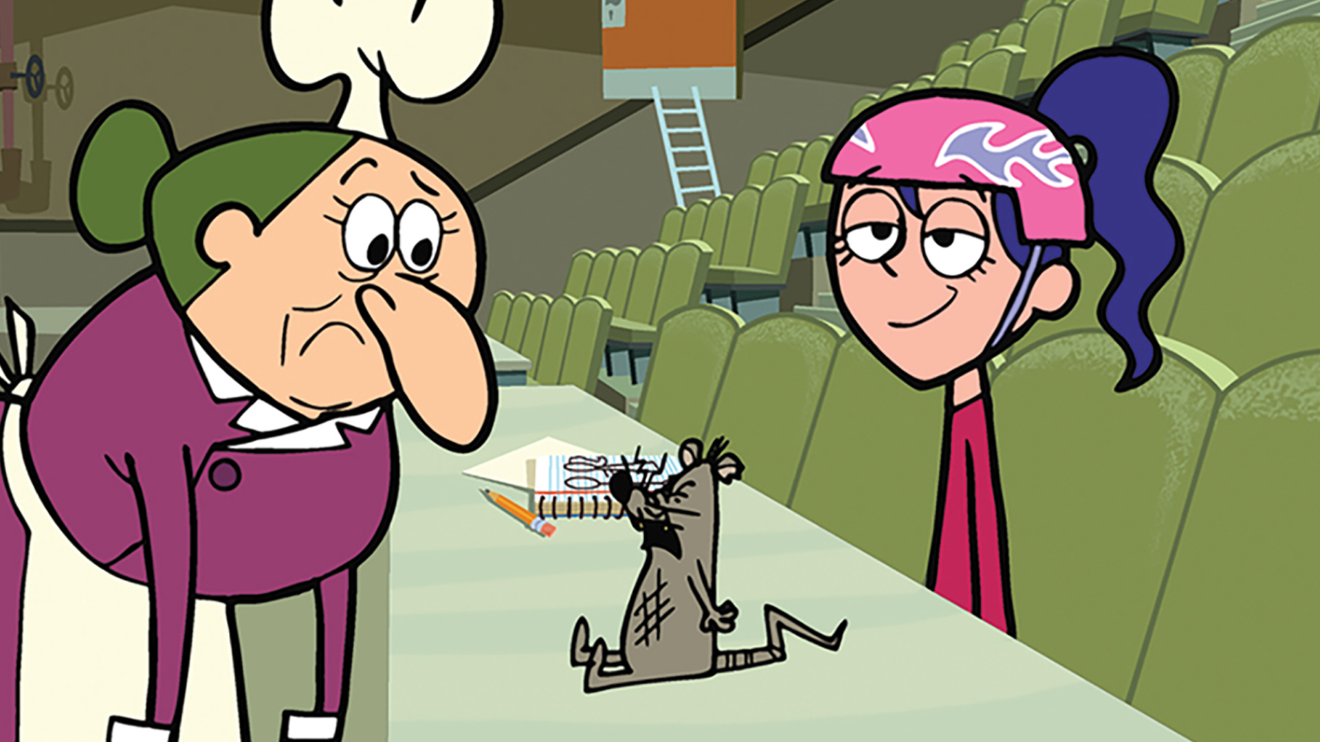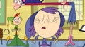 Kidswatter ve a Todd entregar su "informe oral" en mímica. / Creyendo que es una pariente lejana de la señorita Mush, Dana adopta la vestimenta.