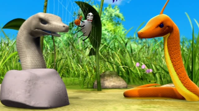 Se ha visto una serpiente en Sunny Patch. Como resultado, Miss Spider le dice a sus chicos que jueguen cerca de casa. / Se acerca el Día de Bugabú y todos los hijos de Miss Spider tienen sus disfraces.
