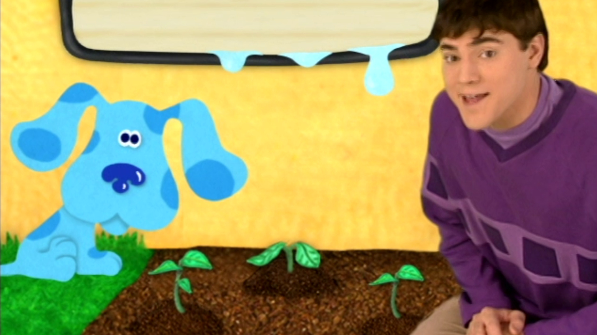 Reunimos las pistas para crear las predicciones de lo que creemos que pasará después. Escuchamos sonidos que vienen desde el patio y debemos jugar a las pistas de Blue para predecir qué pasará en el allí.