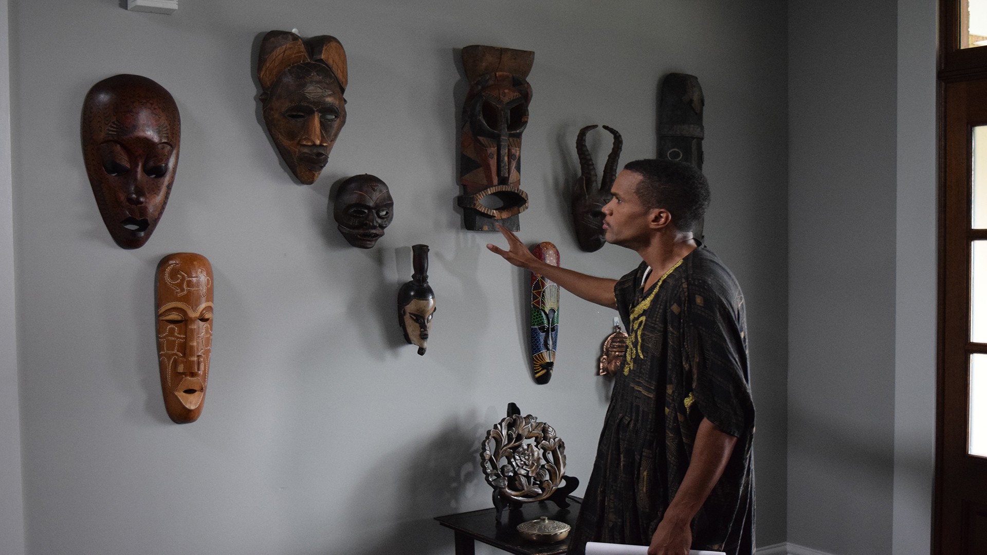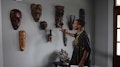 Jeanette Osborne se regala un juego de máscaras haitianas para decorar la casa de sus sueños en California que comparte con su esposo Bob Griffith y su hijo Grier de 12 años.