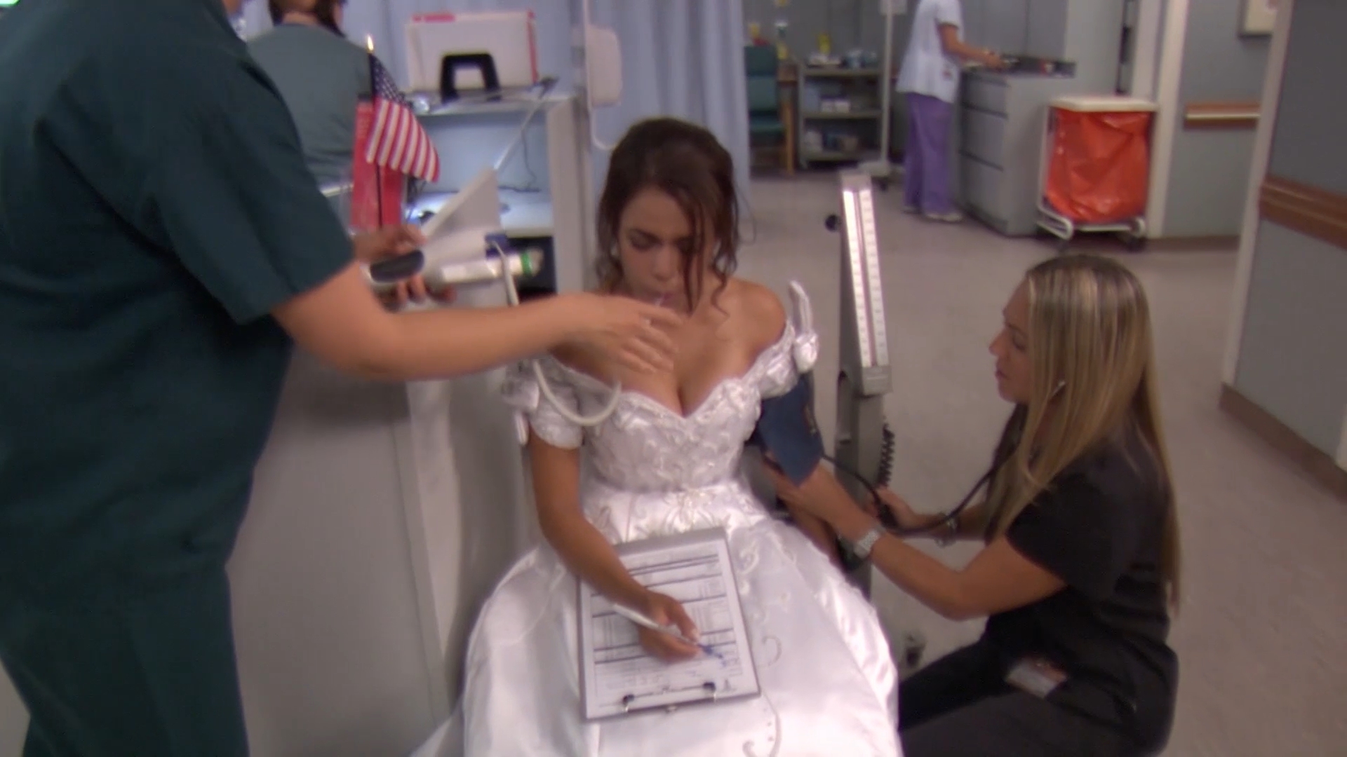 Un paciente con accidente cerebro-vascular paralizado observa sin palabras y horrorizado mientras su esposa y sus 2 novias pelean por él.