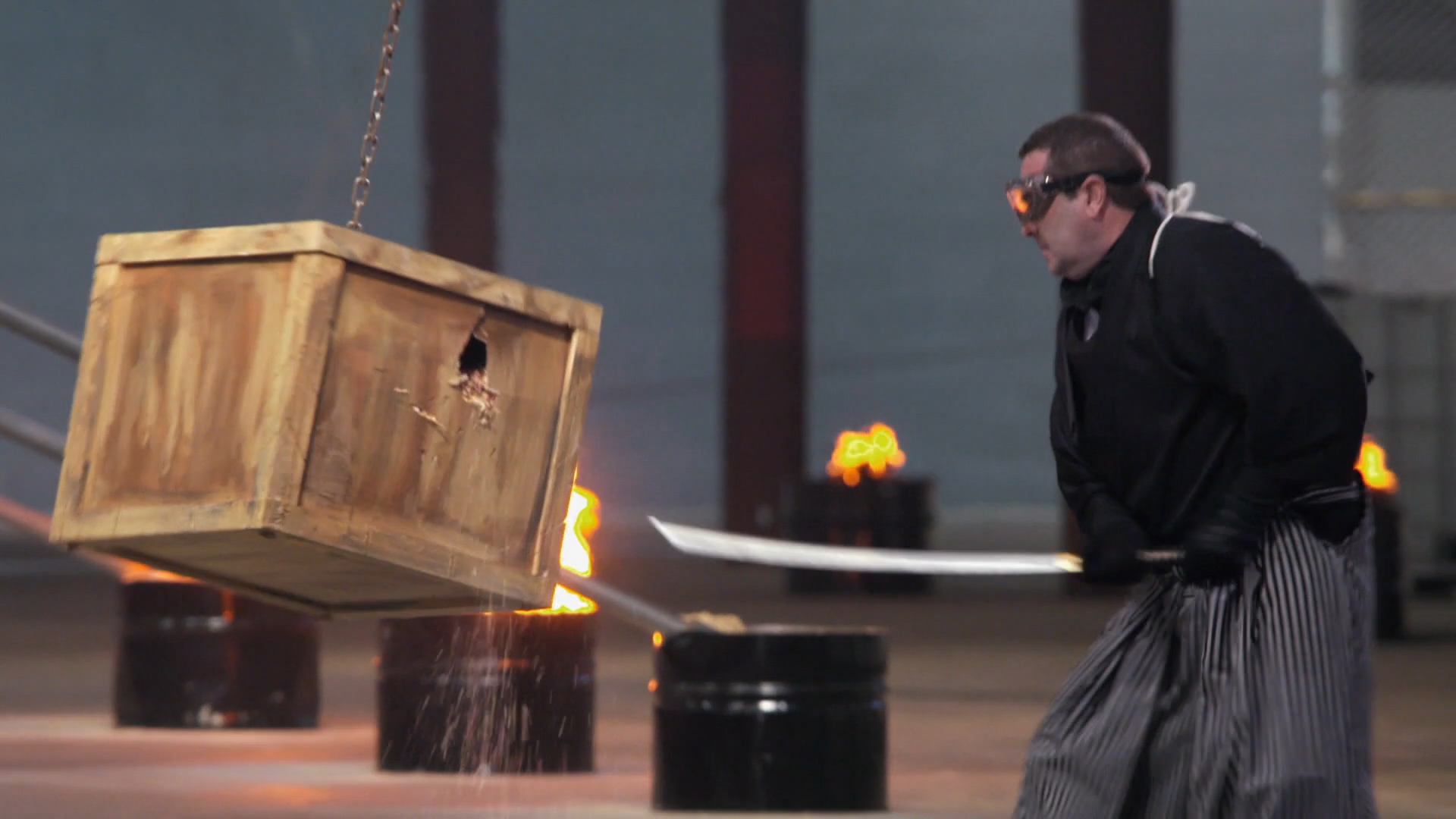 Cada competidor tiene un turno en una carrera de obstáculos contrarreloj que pone a prueba la fuerza, la dureza, el filo y la capacidad de un arma blanca de causar el mayor daño posible… ¡Todo frente a un público en vivo!