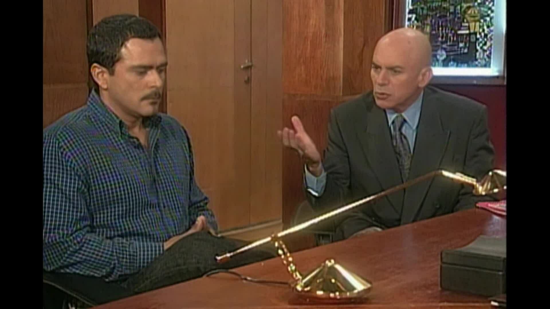 Santiago está a punto de irse para la constructora. De pronto el vigilante le avisa que un mensajero de Ernesto Solís lo solicita. Santiago lo manda a pasar sin sospechar de quien se trata realmente.