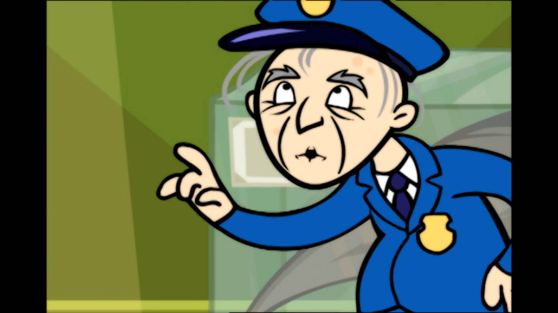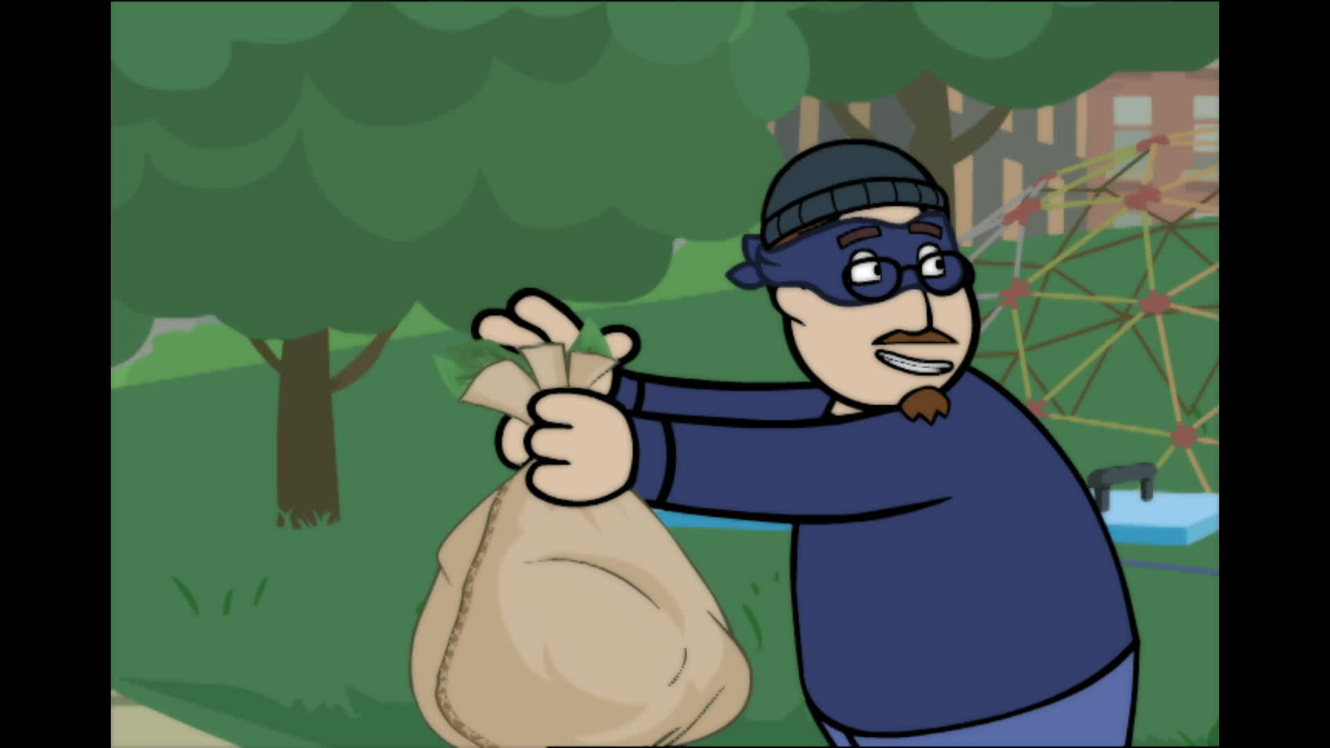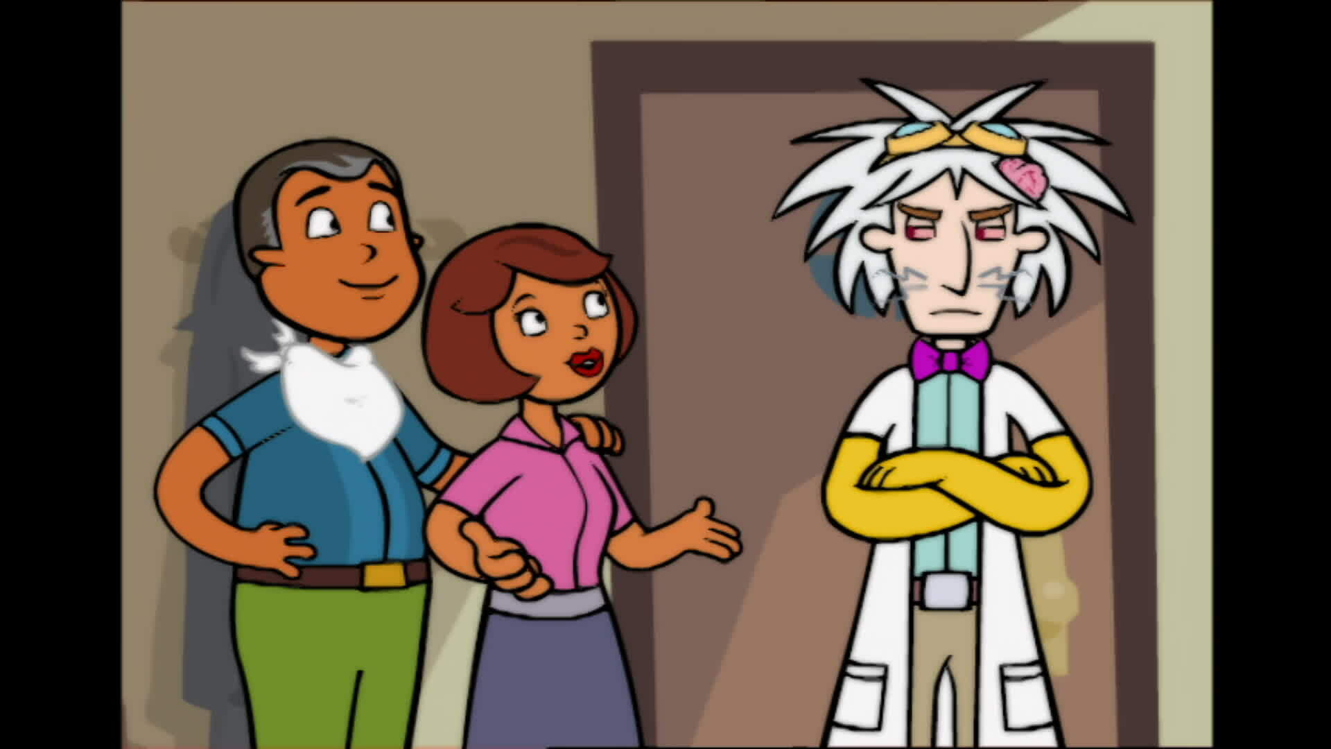 Chuck desactiva las cámaras de seguridad y ata a los guardias del Ayuntamiento en lo que él cree que es la máxima demostración de poder villano./Glen Furlblam está de vuelta en escena y esta vez se hace pasar por el Dr. Tres Cerebros.