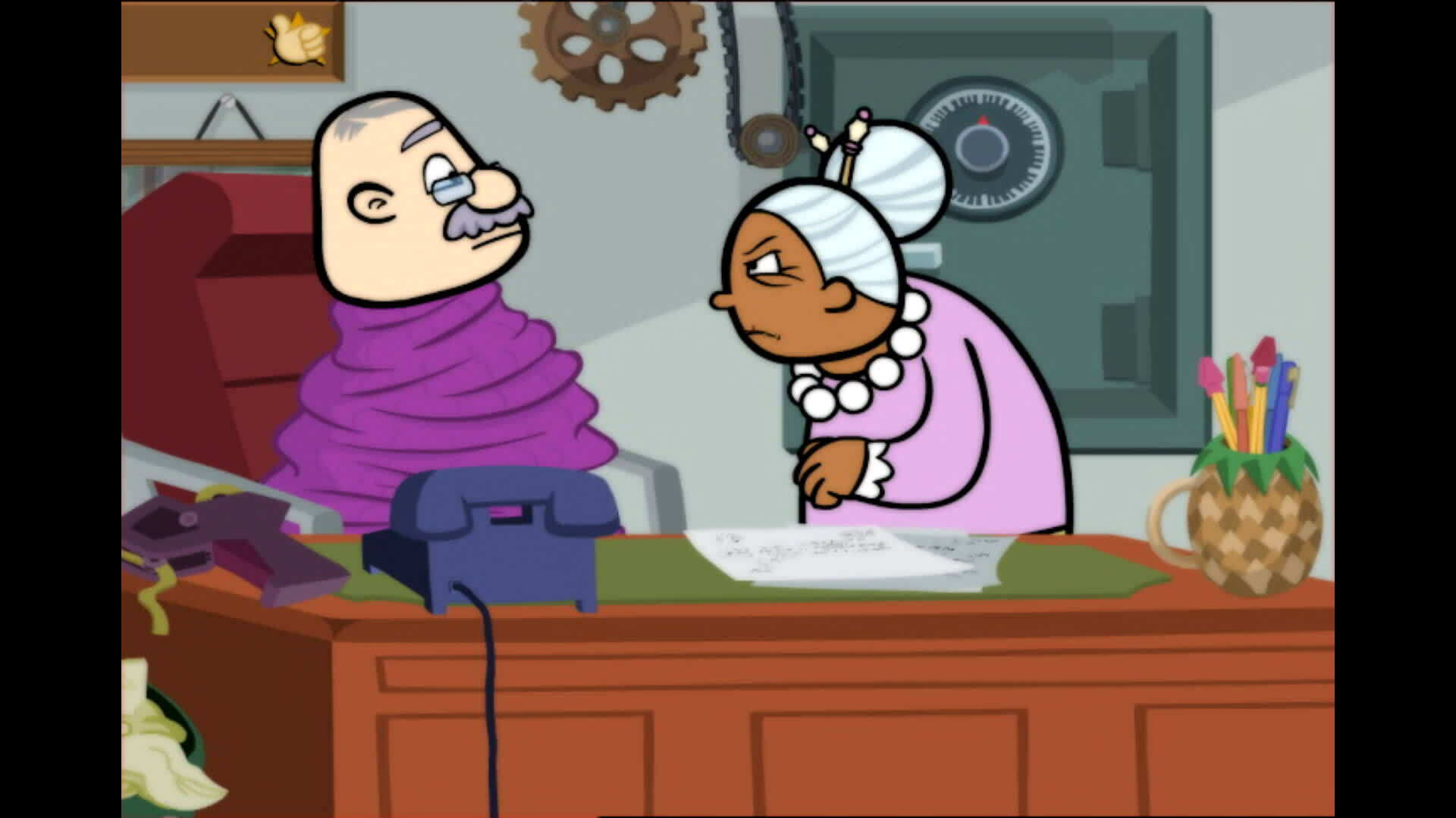 Chuck intenta robar oro en lugar de sándwiches, lo que confunde a todos los demás./La inteligente villana Granny May engaña a la gente del pueblo para que se vuelva contra WordGirl, proporcionando una tapadera para su última ola de crímenes.