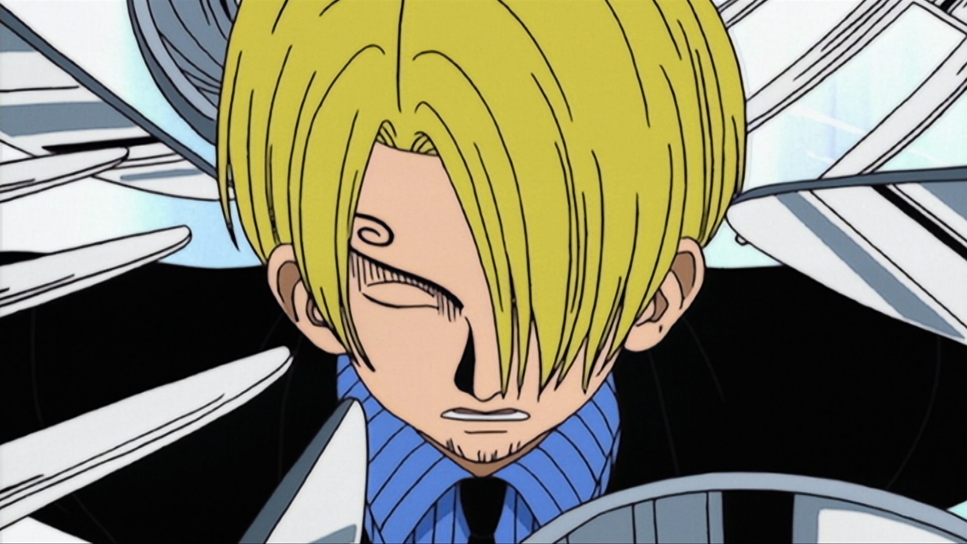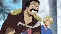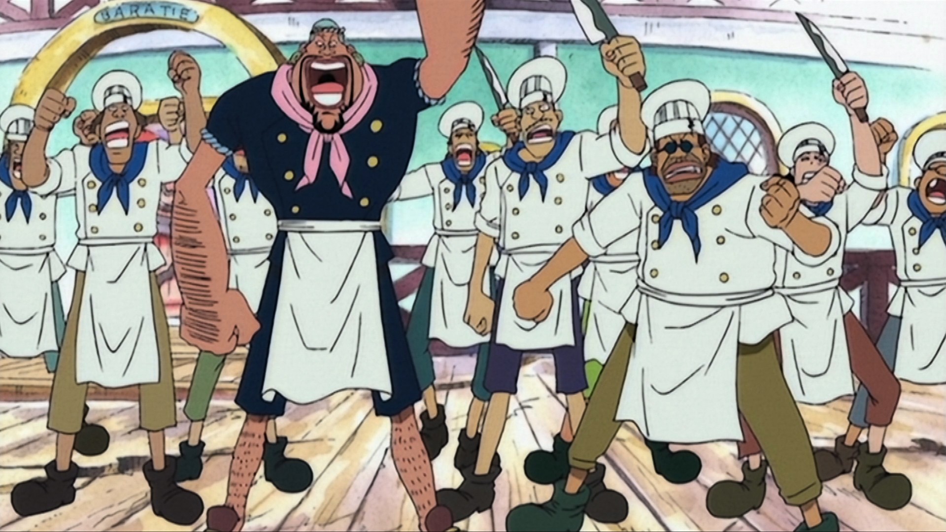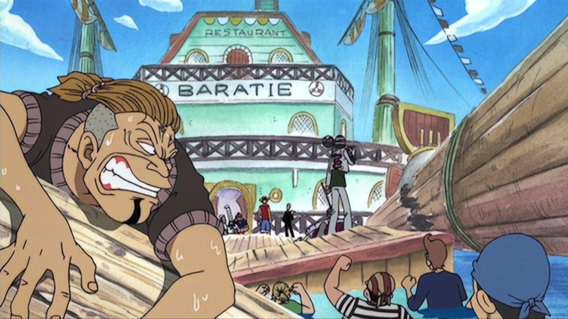 En el Baratie conocerán a Sanji, un asistente del chef con un gran corazón. De hecho, asiste a Gin, un pirata moribundo de la tripulación de Don Krieg.