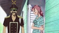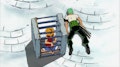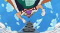 Tanto Sanji como Usopp logran vencer en sus respectivos combates, así que la acción se centra en Luffy, quien por fin ha salido del agua gracias a la ayuda de Nojiko, Gen y Sanji