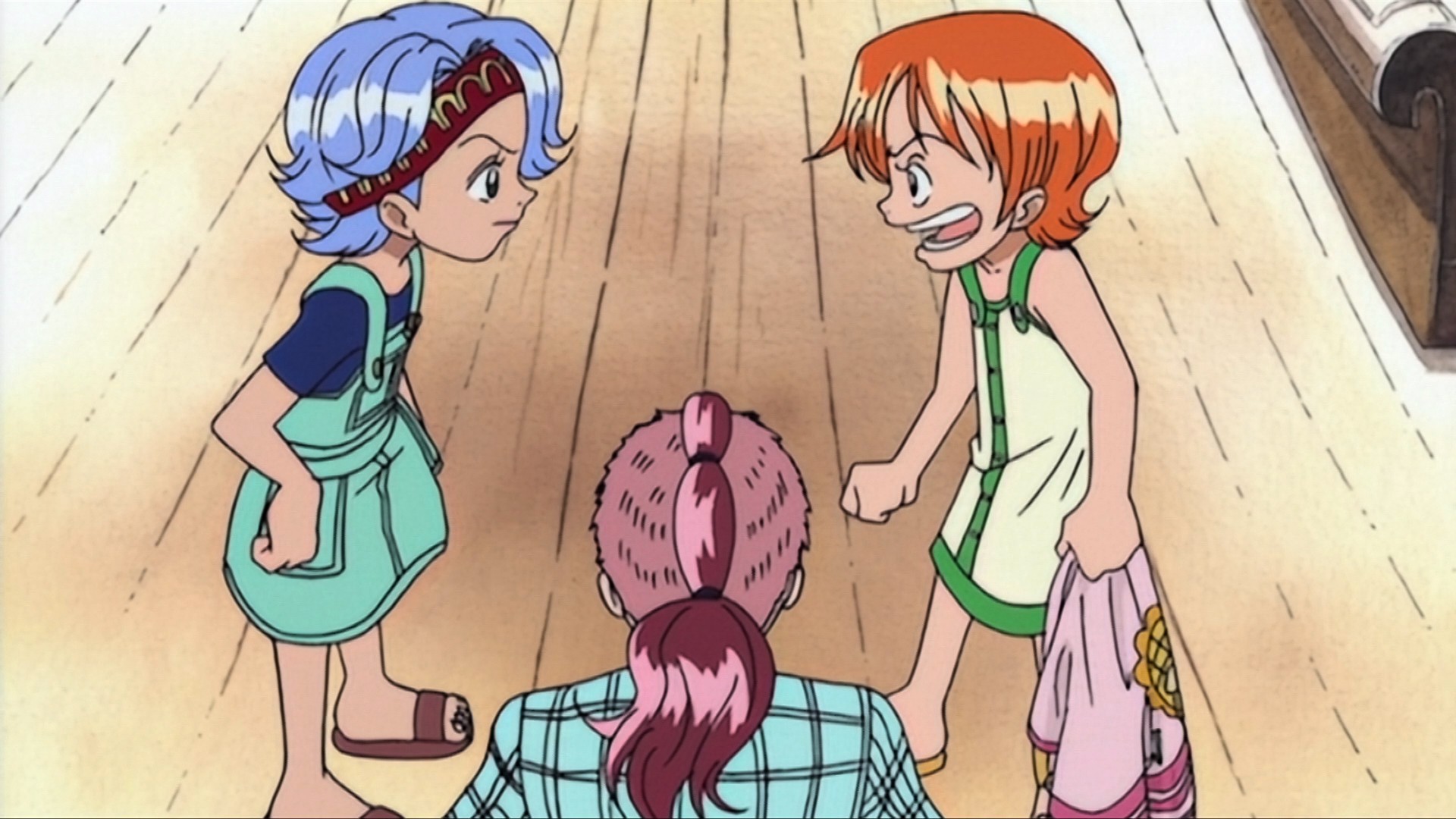 Arlong asalta la aldea donde viven felizmente Nami, Nojiko y Bellemere. Debido al asalto, Bellemere se ve obligada a sacrificar su vida para salvar a sus dos hijas.